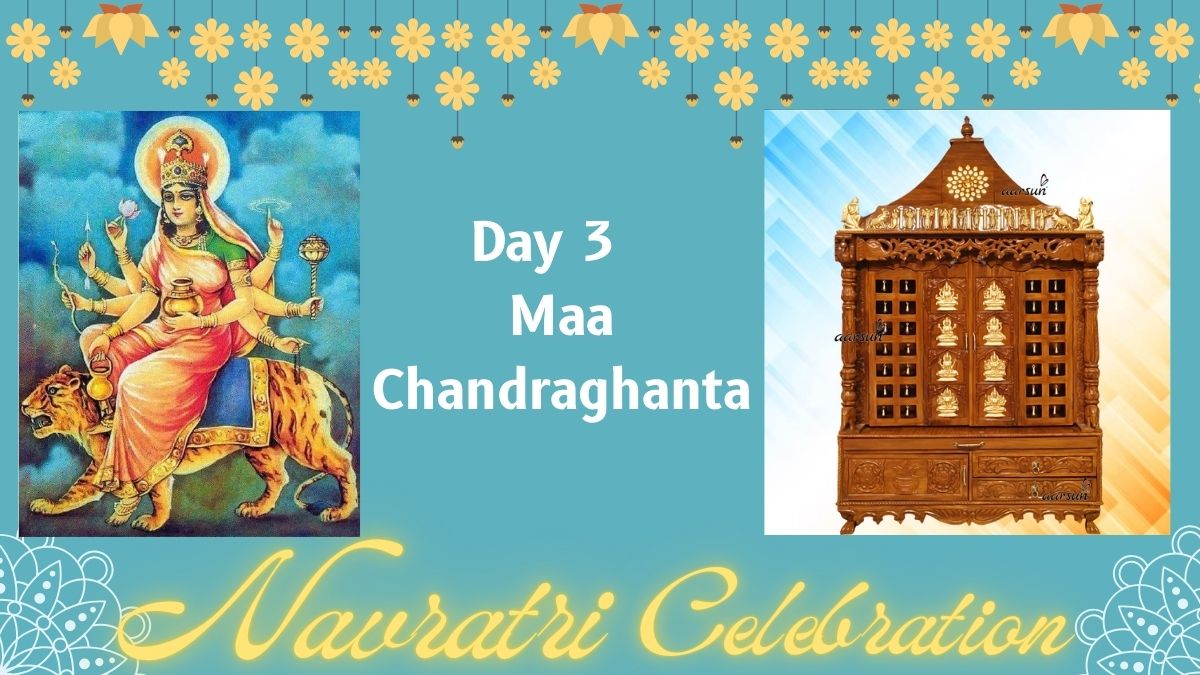 How about considering Aarsun’s Walnut finish temple? There are many benefits of this temple. This temple has a unique combination of Ashtlaxmi power with the auspicious sound of brass bells, that will elevate your puja room with divinity this Navratri. The temple is unique in design and serves its purpose. The temple has three pull-out drawers and a storage cabinet. With a long bhog tray, you can make offerings to Goddess Katyayni. The pillars rest on elephant figures.