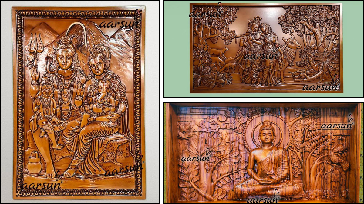 The 8-seater Dining Table Set is crafted by skilled artisans with premium quality teak wood. The top of the Round Dining Table is finely carved and finished with a light walnut color.