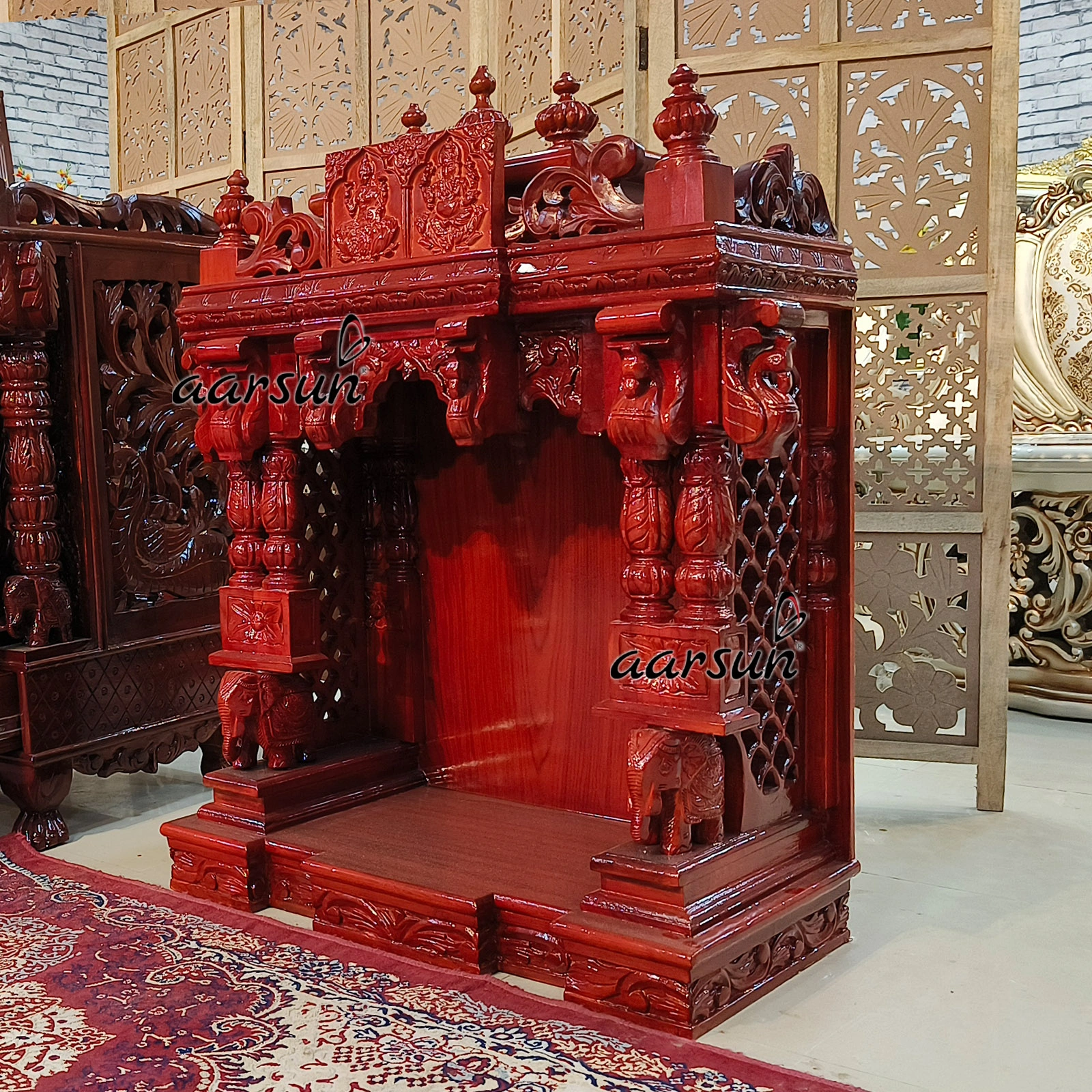 - Intricate Ganesh & Laxmi ji Carving on Temple Top