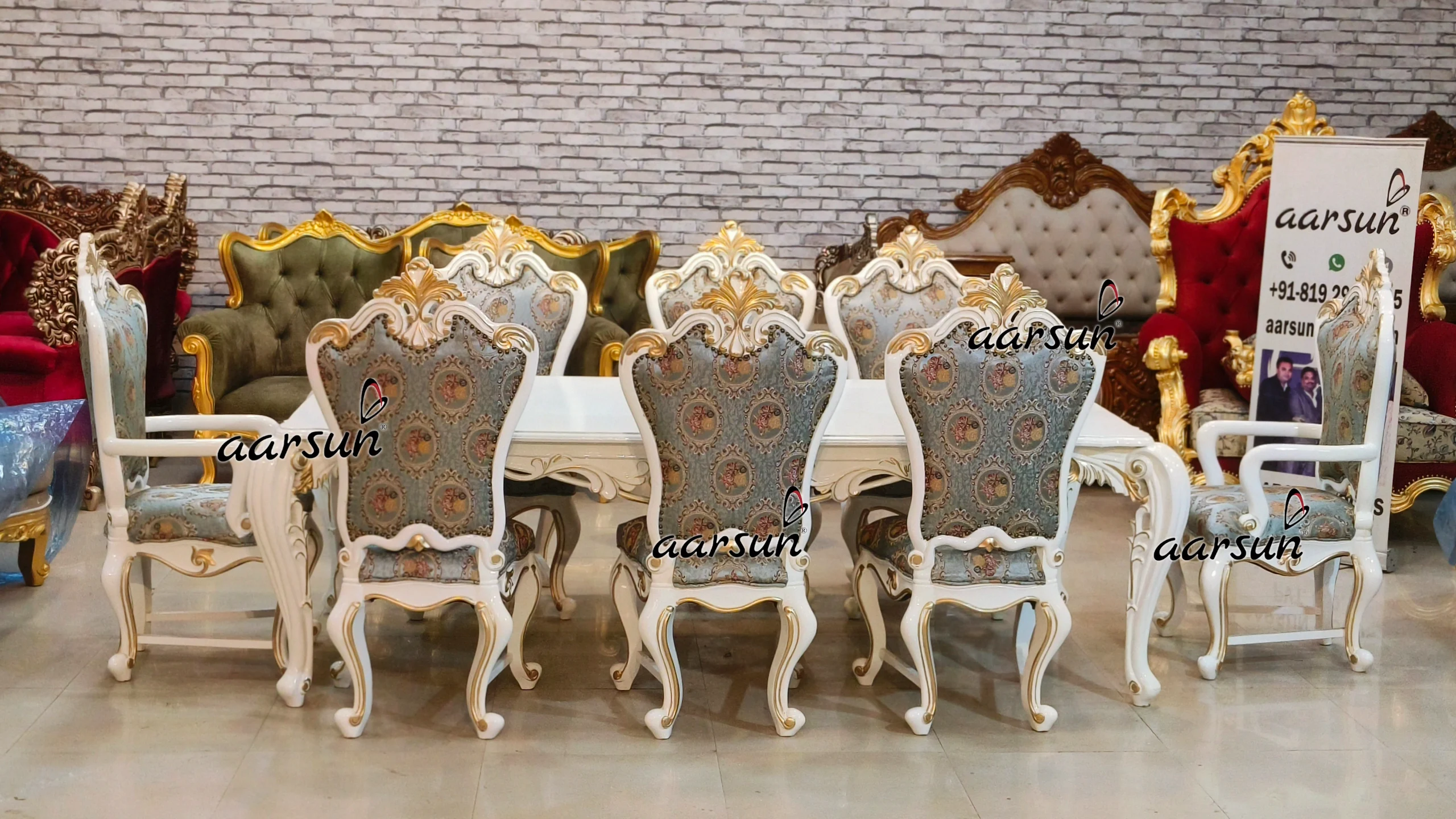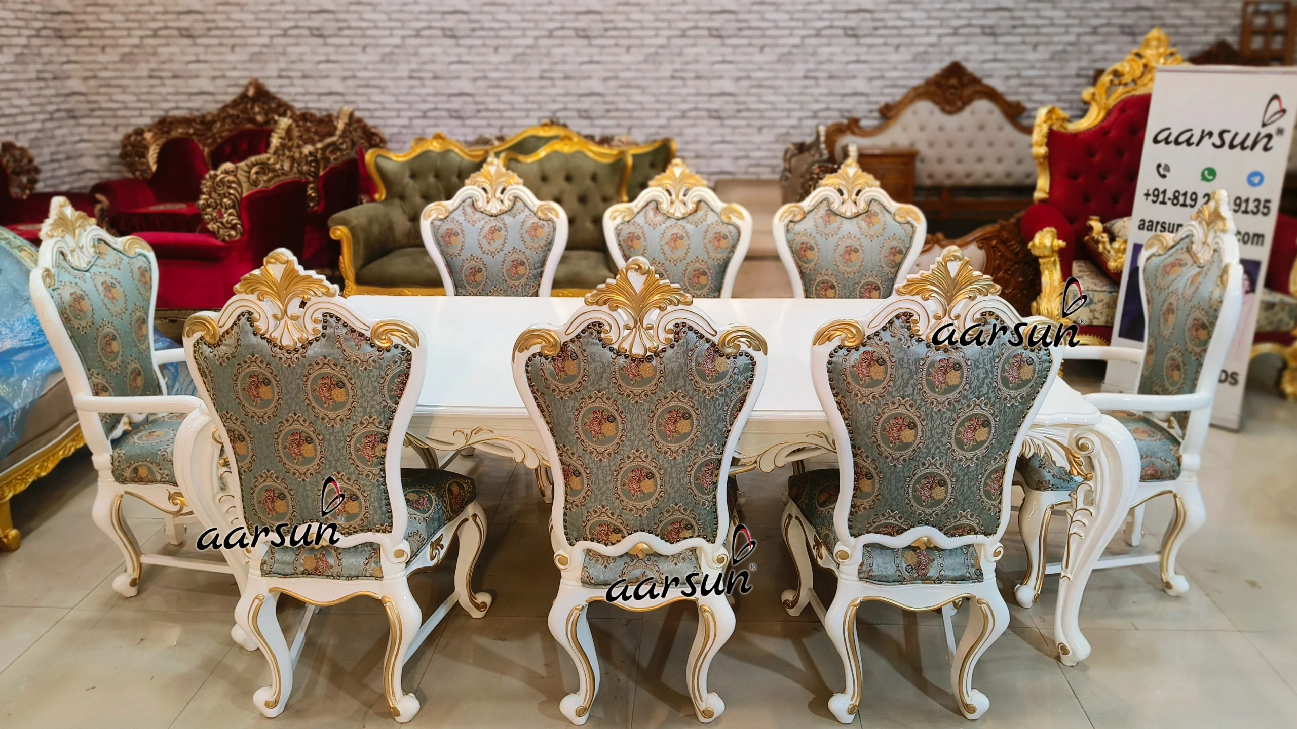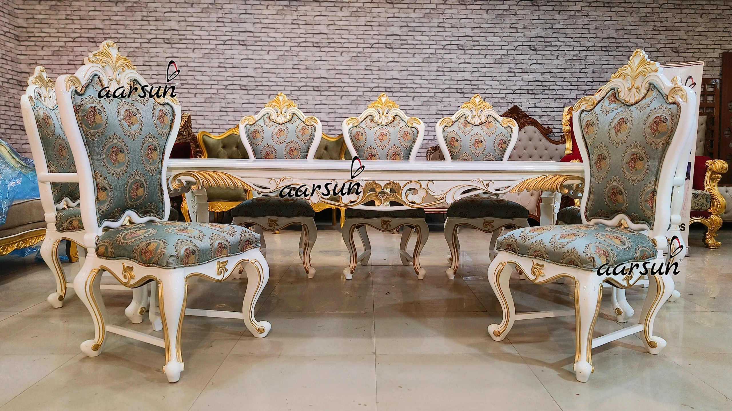 Home / Latest Dining Table Chair Designs / 8 Seater Dining Set In White Deco Paint 8 Seater Dining Set In White Deco Paint Call for Best Price WhatsApp Global DeliveryFree Shipping In IndiaAvail GST Credit on Business PurchaseLets have a look at Our Happy Customers Category: Latest Dining Table Chair Designs Tags: handcarved dining set, latest dining set, Royal Dining Set, wooden royal dining set Description Description Related products 4 Seater Counter Height Dining Set in Teak Wood DNG-0042 Read more Victorian Style Dining Set 10 Seater YT-114 Read more Wooden Dining 6 seater DNG-0040 Read more Handcrafted Wooden Dining Set DNG-0006 Read more
