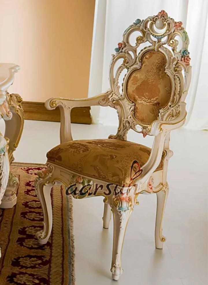 Aarsun presents 8 Seater Royal Dining Set with Dual Tone Tipping is perfect for creating a luxurious and majestic ambiance at your Dining area. Throughout this beautiful Royal Dining Set, you will find gorgeous and breathtaking carvings that lend an old-world charm and elegance. The Royal Wooden Dining Set has unique carvings and shiny white polish done by our skilled artisans. This Royal 8 Seater Dining Set has made with premium quality Teak Wood.