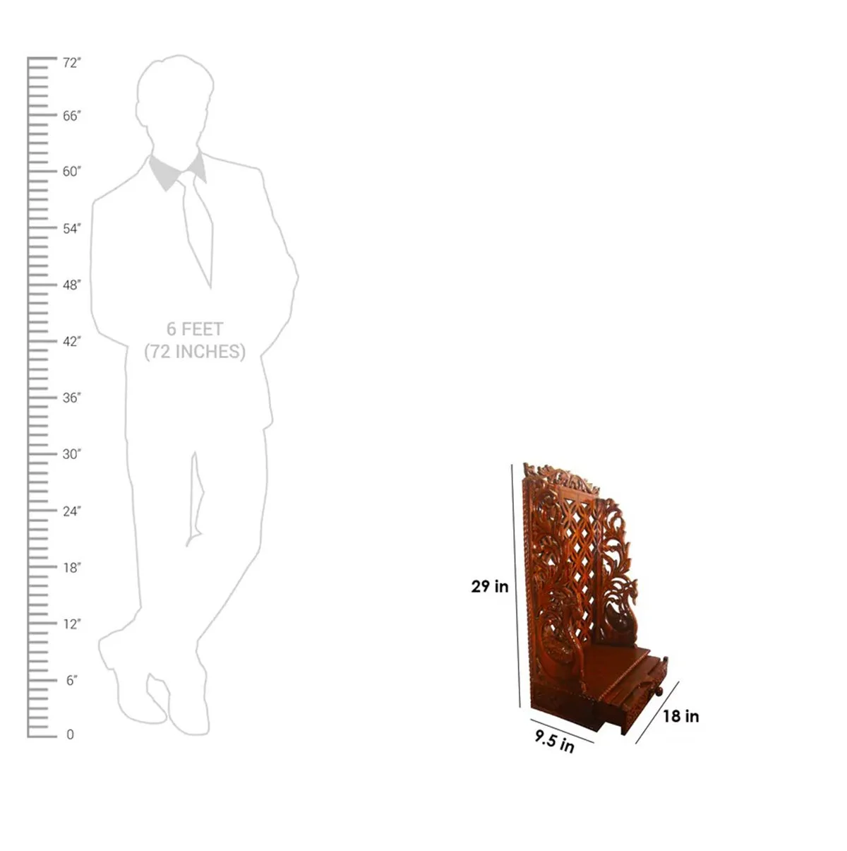 Immerse yourself in the timeless beauty of our Aarsun Handmade Wooden Temple/Mandir. Our remarkable piece, carefully handcrafted by skilled artisans. Skilled artisans expertly construct the Mandir using premium quality Sheesham Wood, also known as Indian Rosewood. This choice of material ensures both durability and natural resistance to decay. The back jali design enhances the beauty of the temple. This wooden temple Bring divine elegance into your home with this exquisitely design. Ideal for your pooja room or living space, this mandir not only serves as a sacred corner but also adds artistic charm to your decor.The size ,color be customized according to your requirement.