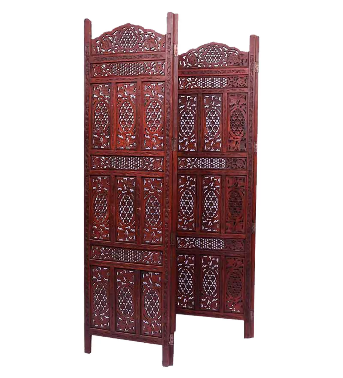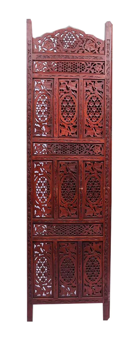 Aarsun brings you this Handmade Folding Antique Design Room Separator made from Sheesham Wood with floral work that gives an elegant and traditional look (matte finish) to your living room. Consists of 4 Panels each of 72 inches Height and 80 inches approximately Width. This stylish partition separates the living room area from the rest of the house or can be used for separating Puja Space from the rest of the house.