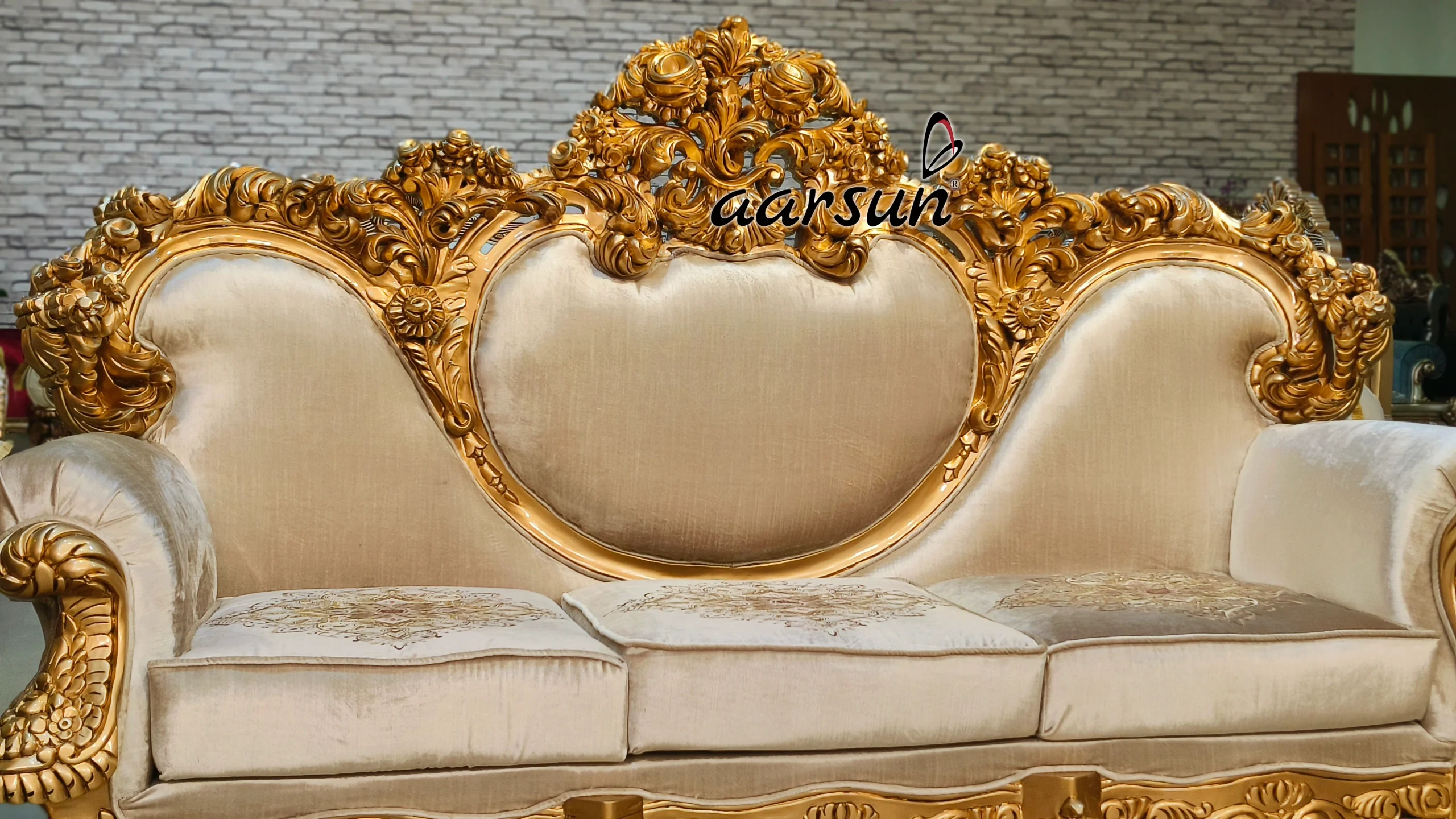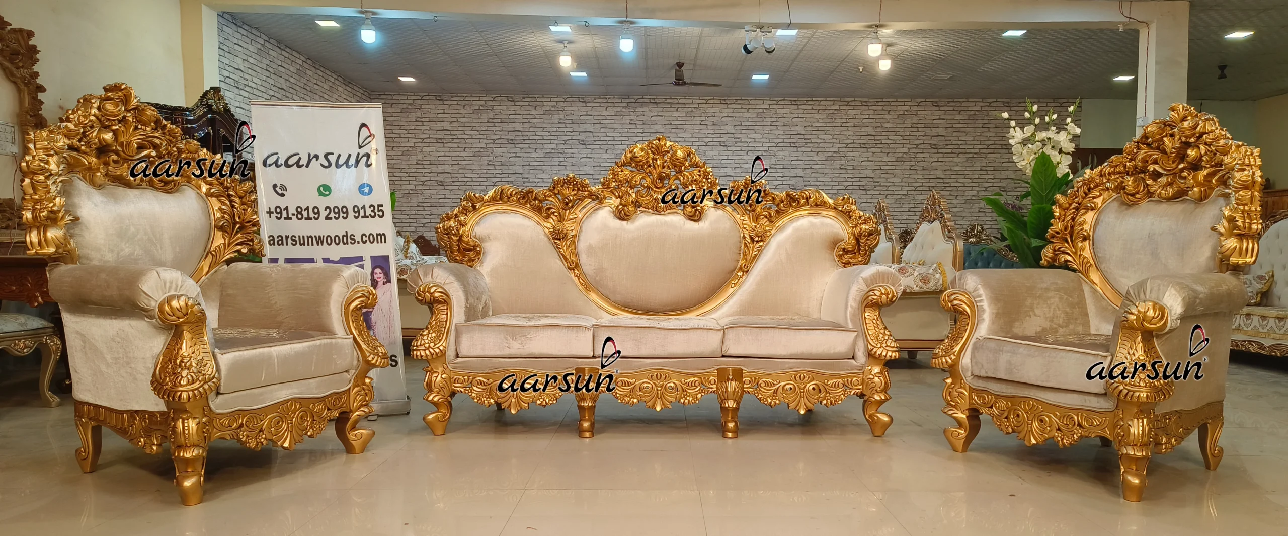 Aarsun  present it’s royal 5 seater sofa set made on premium teak wood. This sofa set is beautifully hand carved by our skilled artisans. Every minute detail is observed while curating this master piece.