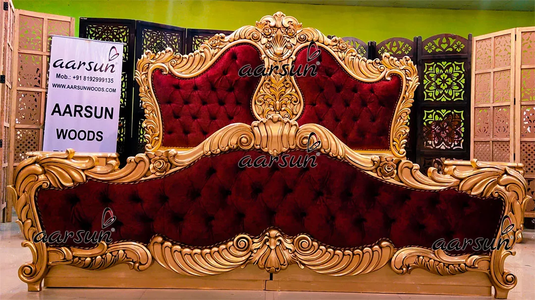 The Custom Made Large Bedroom Set has a Huge Back matching the footboard and has a comfortable contemporary fabric upholstery. The Gold color is by far the most liked color paint across the globe. The USP of the unit is its beautiful carving on a thick wood-base. In fact. This is Royal yet the gold has a subtlety to it. The King-Size Bed comes with a top-load hydraulic storage box for easy opening and closing.