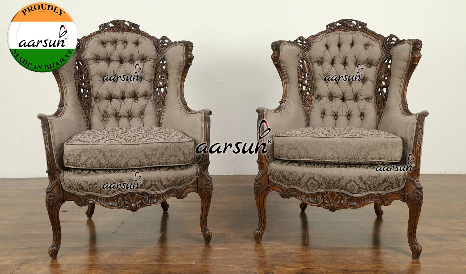 - Antique Style Handcarved Wing Chair is made from high-quality teak wood with warmth and elegance