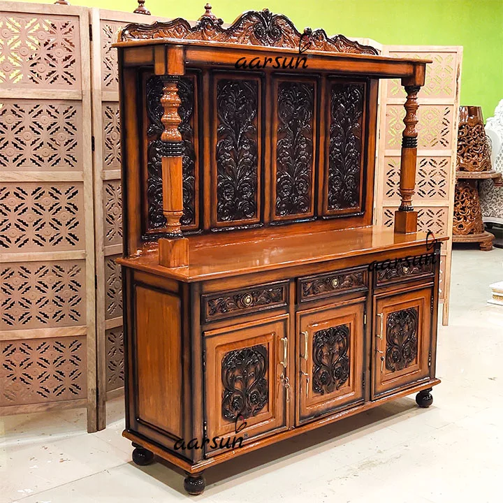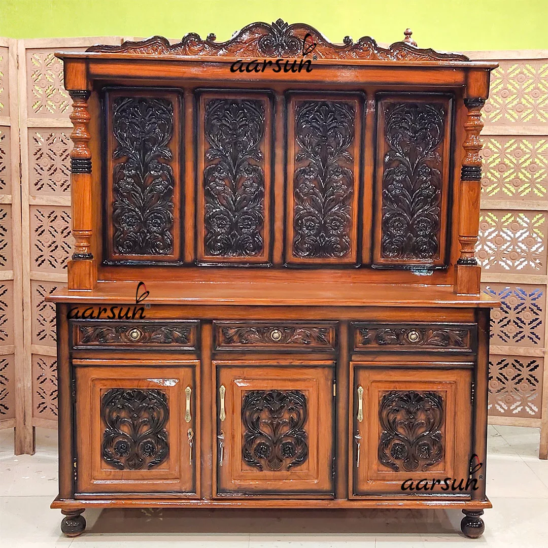 Here we are with a Splendidly Carved storage Crockery Cabinet / Bar Unit for your Home Interior. Wooden Beautiful Display Unit, as you already know, is preferred in Teak wood mostly because of durability and longevity, protecting and displaying dinnerware and other essentials.
