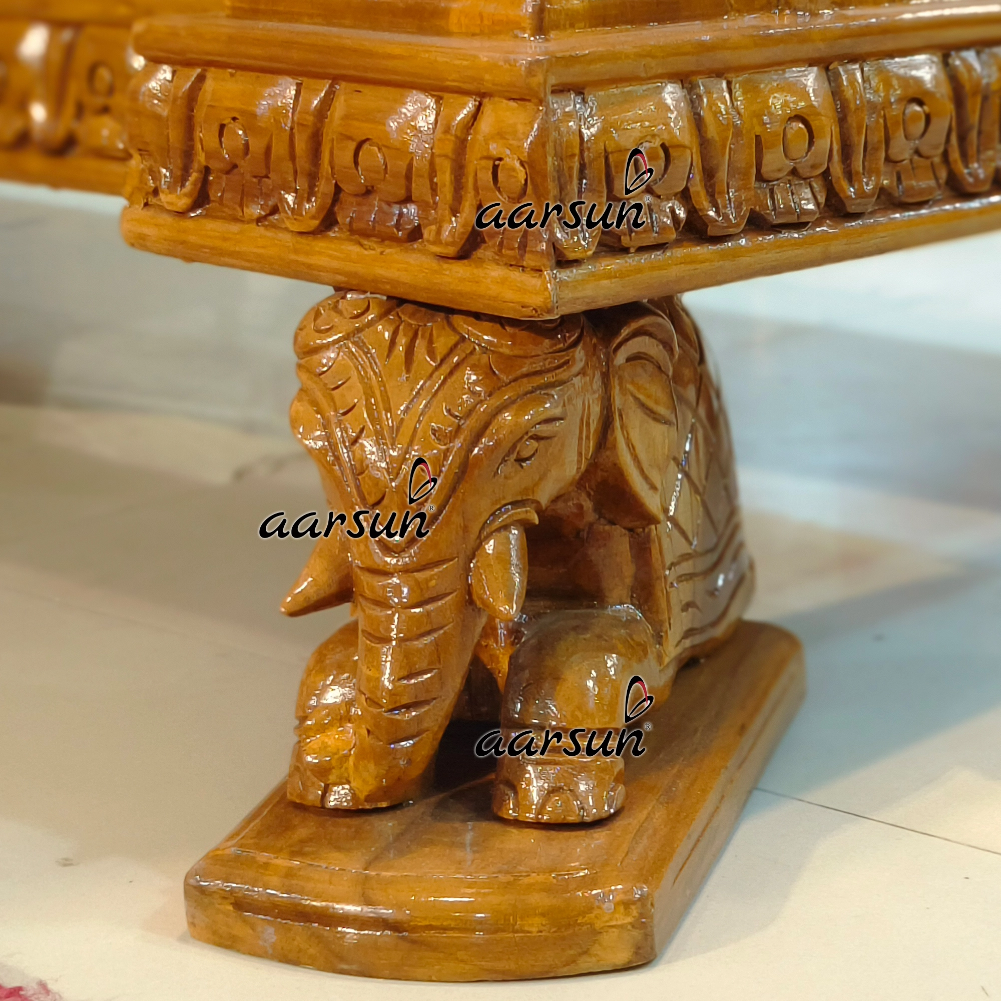 Adorned with brass bells and Elephant-shaped legs