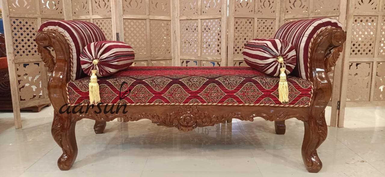 Aarsun has been making furniture for more than 35 years now and we can customize the settee according to your needs. We can customize the size, the color, the fabric as well as the design as per your home interior.