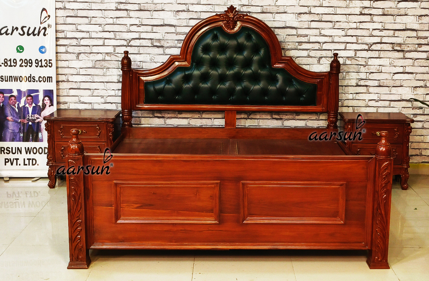 The classical Semi Poster Bed is designed according to client’s home factors such as wallpaper, lighting, chandeliers, and flooring. All these elements contribute to creating a theme, so buyers often want furniture that matches their home theme. We have a long list of testimonials where you can see the actual placement of the furniture within different themes.We are deeply committed to the quality of Aarsun products, and local artisans are integral to our work.We have a quality team that checks the work at every stage before dispatching it to the client’s place.