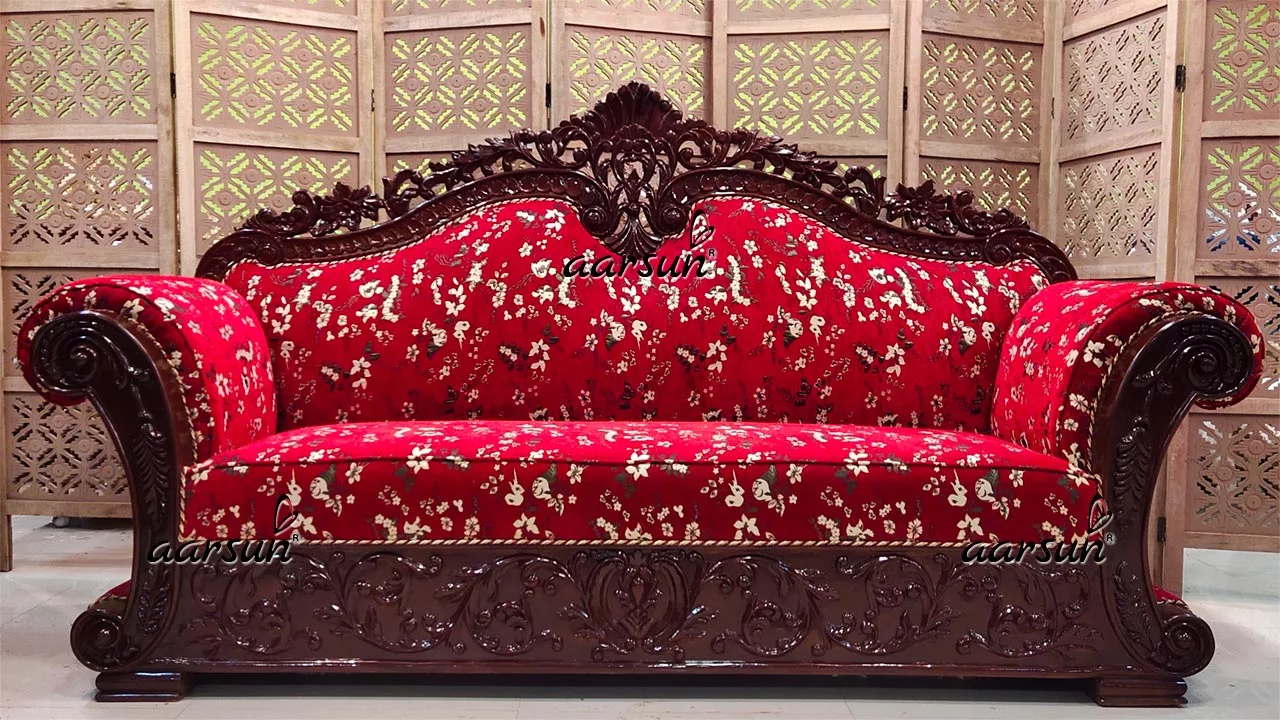 Aarsun brings you a 3+2 Custom Made Sofa Set that is a perfect example of the renowned woodworking skills of Saharanpur Artisans. This classic sofa set includes a 3 seater, a 2 seater sofa, and a center table with a full-length drawer.