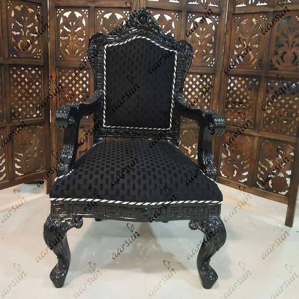 The  Dark finish Designer Wooden Arm chair significantly gained popularity in the early 18th century amongst the Royals. Since then, the contemporary style became timeless. Aarsun Wooden  Arm chair personifies the same old royalty in Dark finish designer chair.