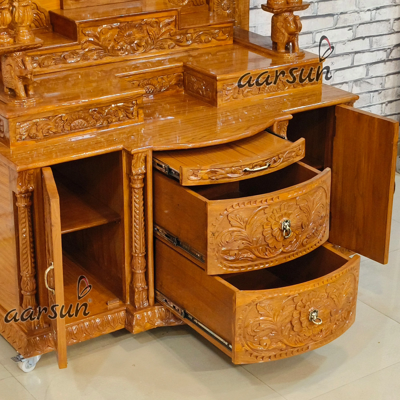 Easy-to-Move Wooden Big Temple for Home (LED And Wheels)