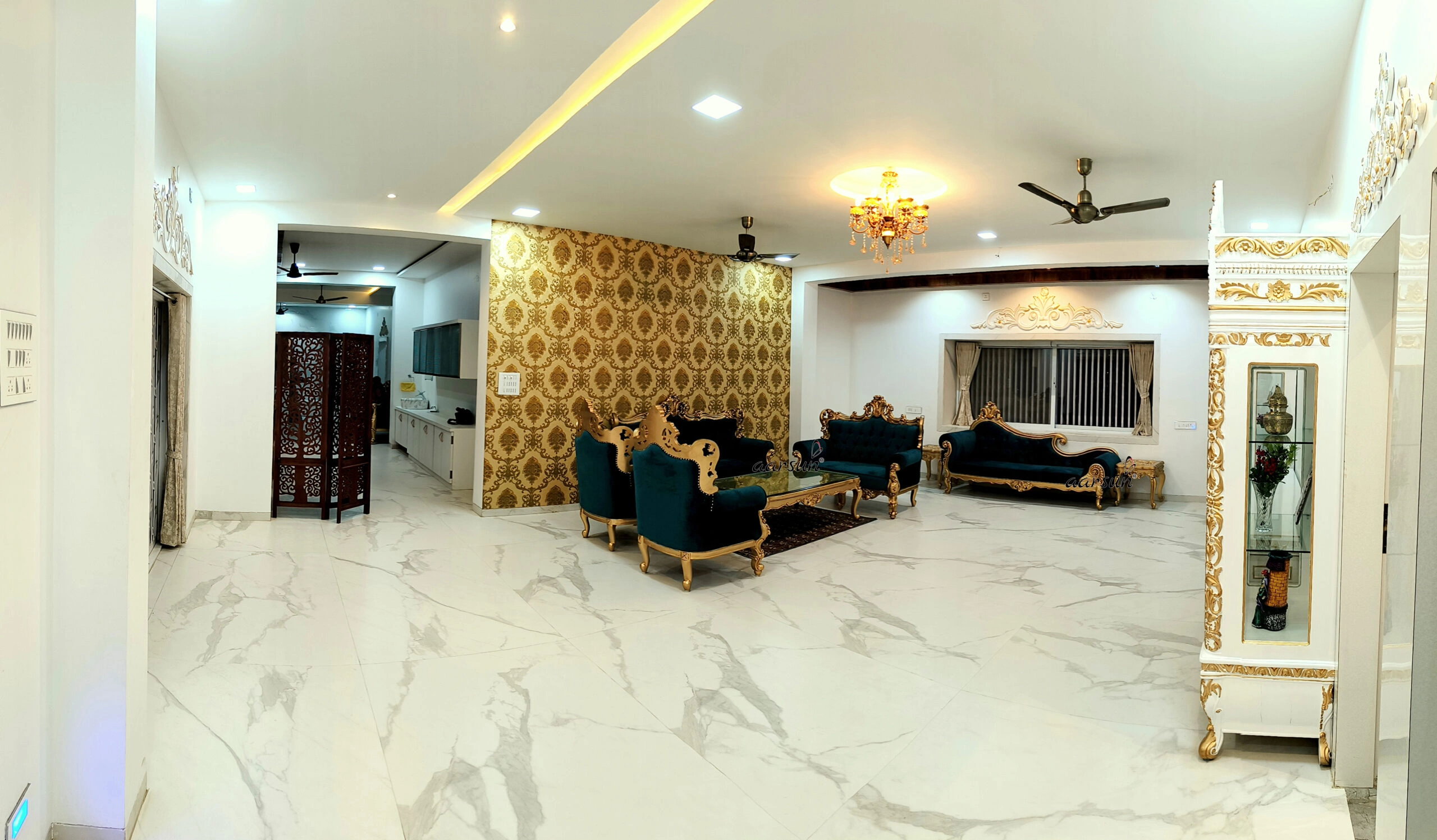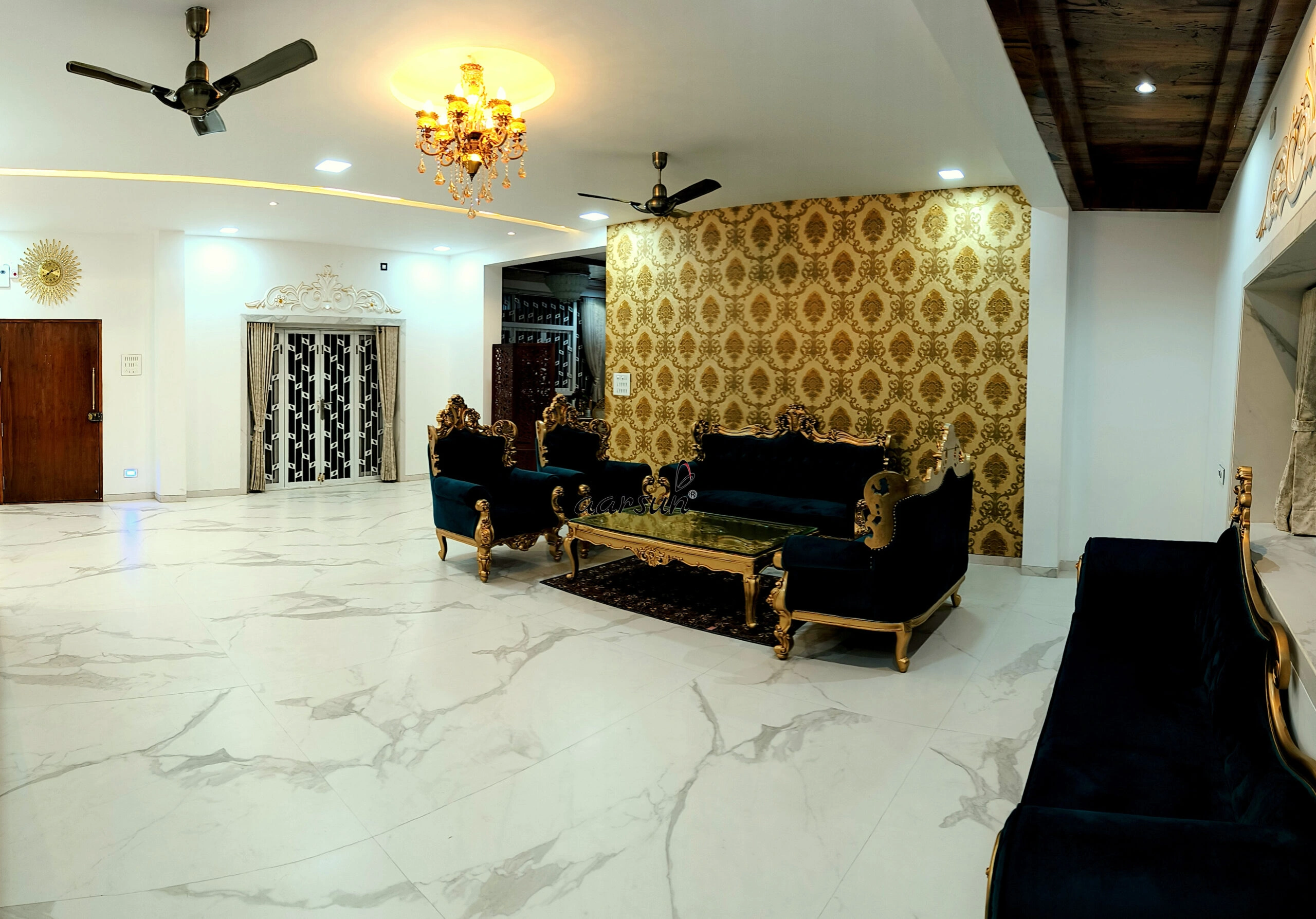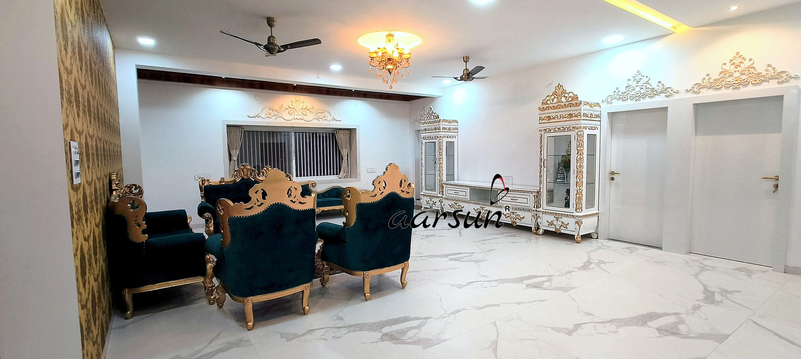 Equisite Royal Wooden Sofa Set with Velvet Upholstery