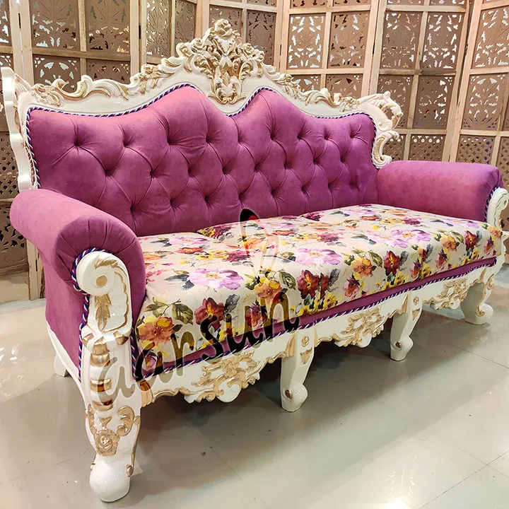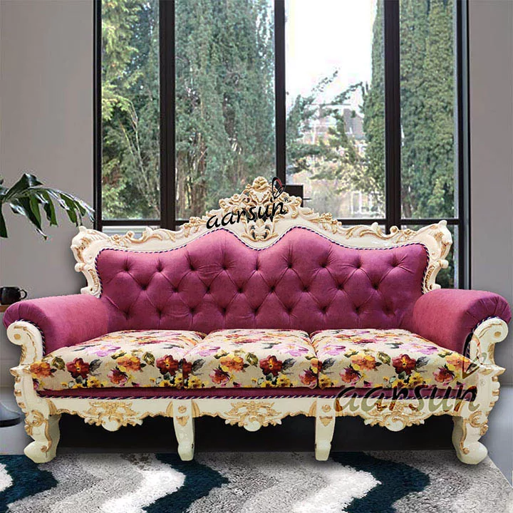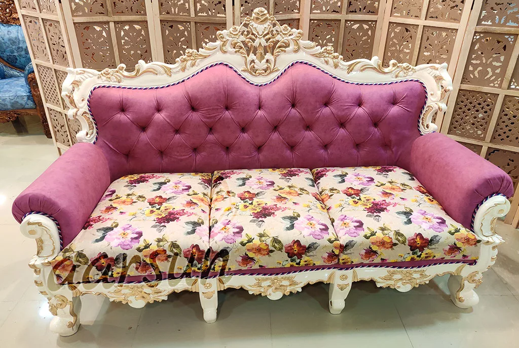 Aarsun brings to you a modern and comfortable Handmade Wooden Fully Carved Royal Sofa Set for your living room. The 3 seater sofa set is made of premium quality wood with floral carving. It has an elegant design that enhances the interior decor of your living room.