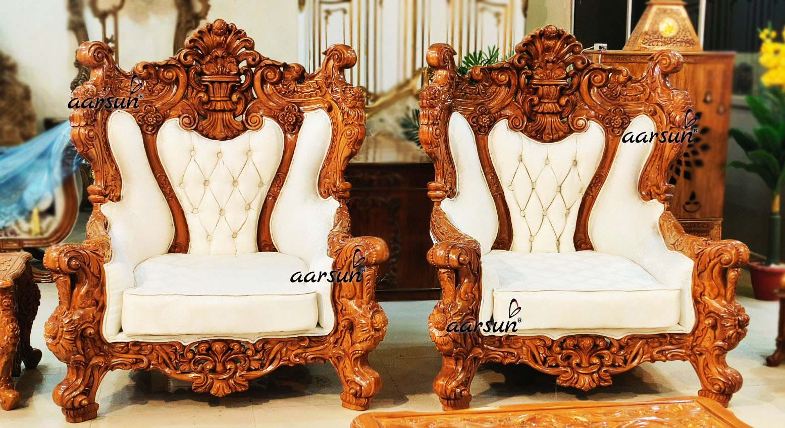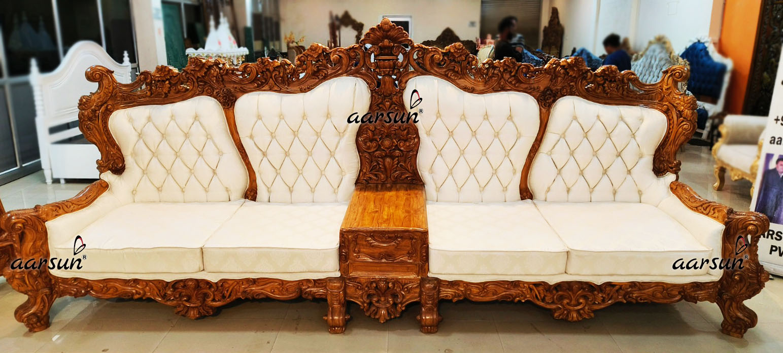 Many people find it hard to believe this entire set up is handcrafted. Our skilled craftsmen create beautiful works of art that are cherished worldwide. This furniture is designed to match the client’s home interior, including curtains, carpets, flooring, and chandeliers. Interior designers and architects are getting inspiration from Aarsun. You can check our testimonial photos to see homes designed by world’s renowned artisans.