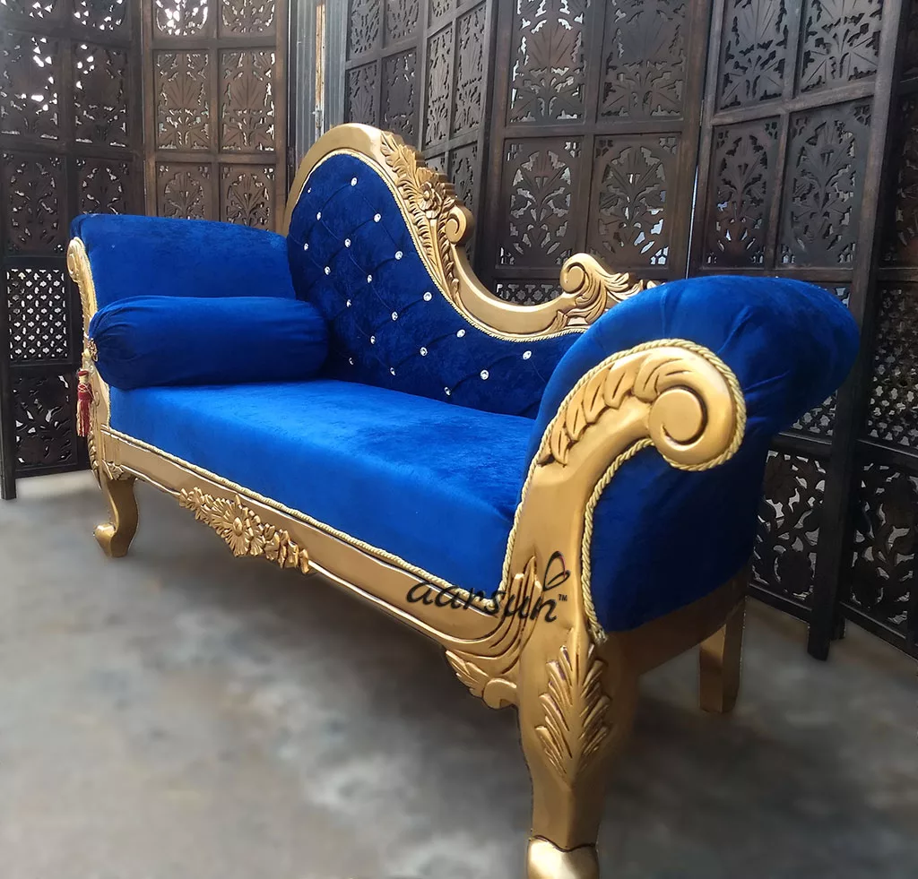 Aarsun brings to you Handcrafted Chaise Lounge made by skilled artisans from Saharanpur, India. The Wooden Chaise Lounge is made of premium quality solid Wood with Royal Gold Finish.