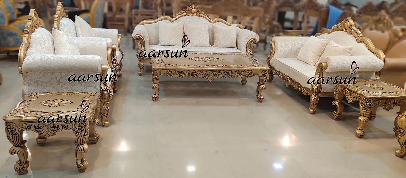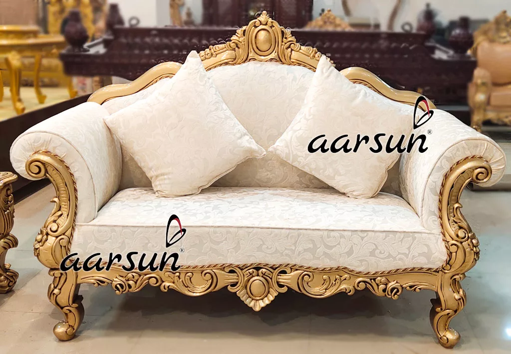 Aarsun – Crafted in India makes each unit as per the clients’ requirements. It can be a 3 seater alone, a 2 seater, and a Single Sofa Chair even- it matters to us. We believe in customer satisfaction along-with keeping the originality intact. The unit can be polished or painted in a variety of shades and colors – teak (as shown in the video), light wood shade, dark walnut shade, Gold, Silver, Black, White, Off White, Off White with Highlights, Copper.