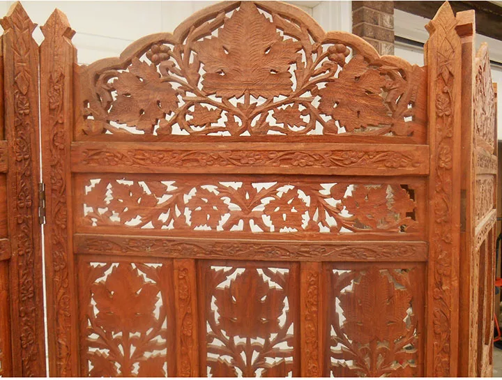 The unit is handmade by skilled artisans in Sheesham Wood. The unit consists of 4 Panels each 72 inches in height and 20 inches in Width. All of our Partitions come in this standard size and can be customized in 2 or 3 or 4 or 6 Panels depending upon the requirement. The unit is hand-buffed to give it an antique style look and traditional finish.
