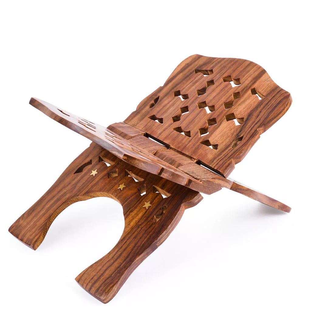 Aarsun brings to you a wide range of handcrafted Wooden Rehal Stand. A decorative modern Rehal stand made from beautiful Sheesham wood, with a floral design with inlay work. This book stand is a universal product, and just perfect for hands-free reading. An X –shaped fold-able book rest is used for placing sacred books during recitation. These are commonly found in temples, at home, Gurudwaras, mosques, as well as churches.