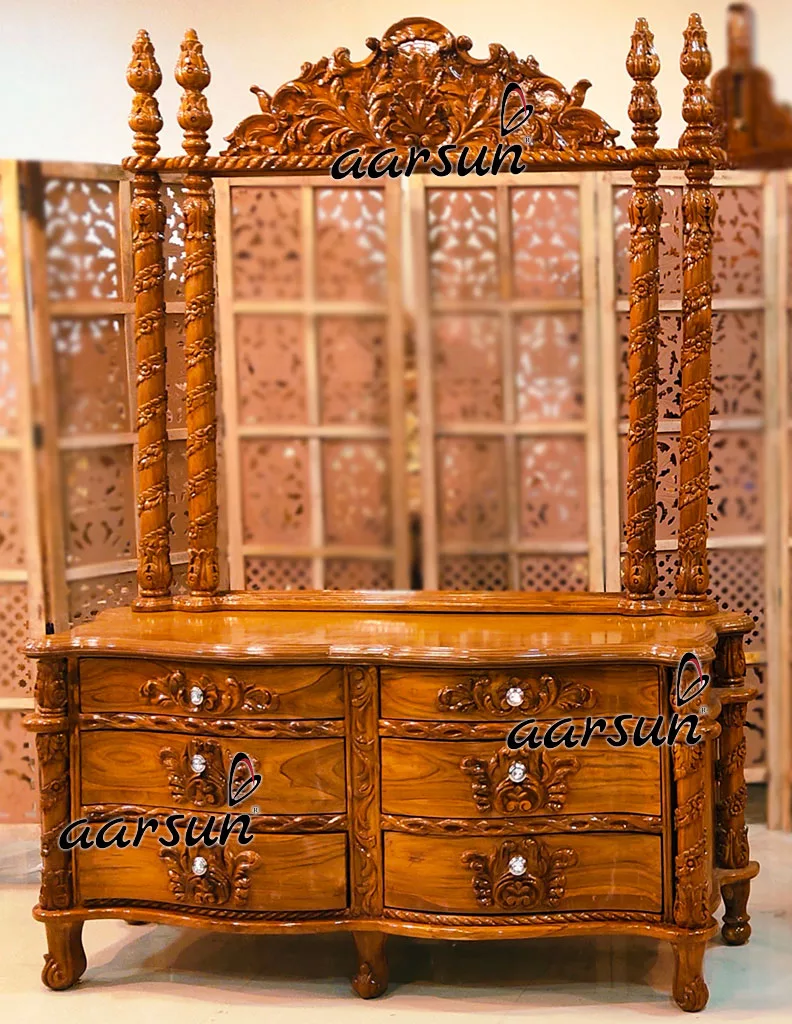 Handmade Wooden Dressers in Premium Quality Wood with fine finishing and mesmerizing designs. The Queen’s dressing tables are carefully handcrafted to provide the best feel of dressing to your queen and princess at home. Each home is different and these dressers are designed keeping in mind the room where they are needs to be placed and how will they enhance the look and style of the space.