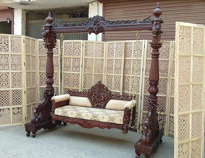 Aarsun brings you Handcrafted Wooden Swing / Jhula suitable for Indoors in premium quality Teak Wood