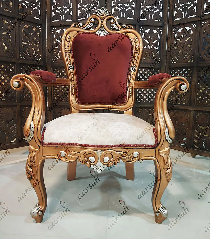 The Italian Style Arm Chair significantly gained popularity in the early 18th century amongst the Royals. Since then, the contemporary style became timeless. Aarsun Italian Style Arm Chair personifies the same old royalty in gold finish with silver tipping.