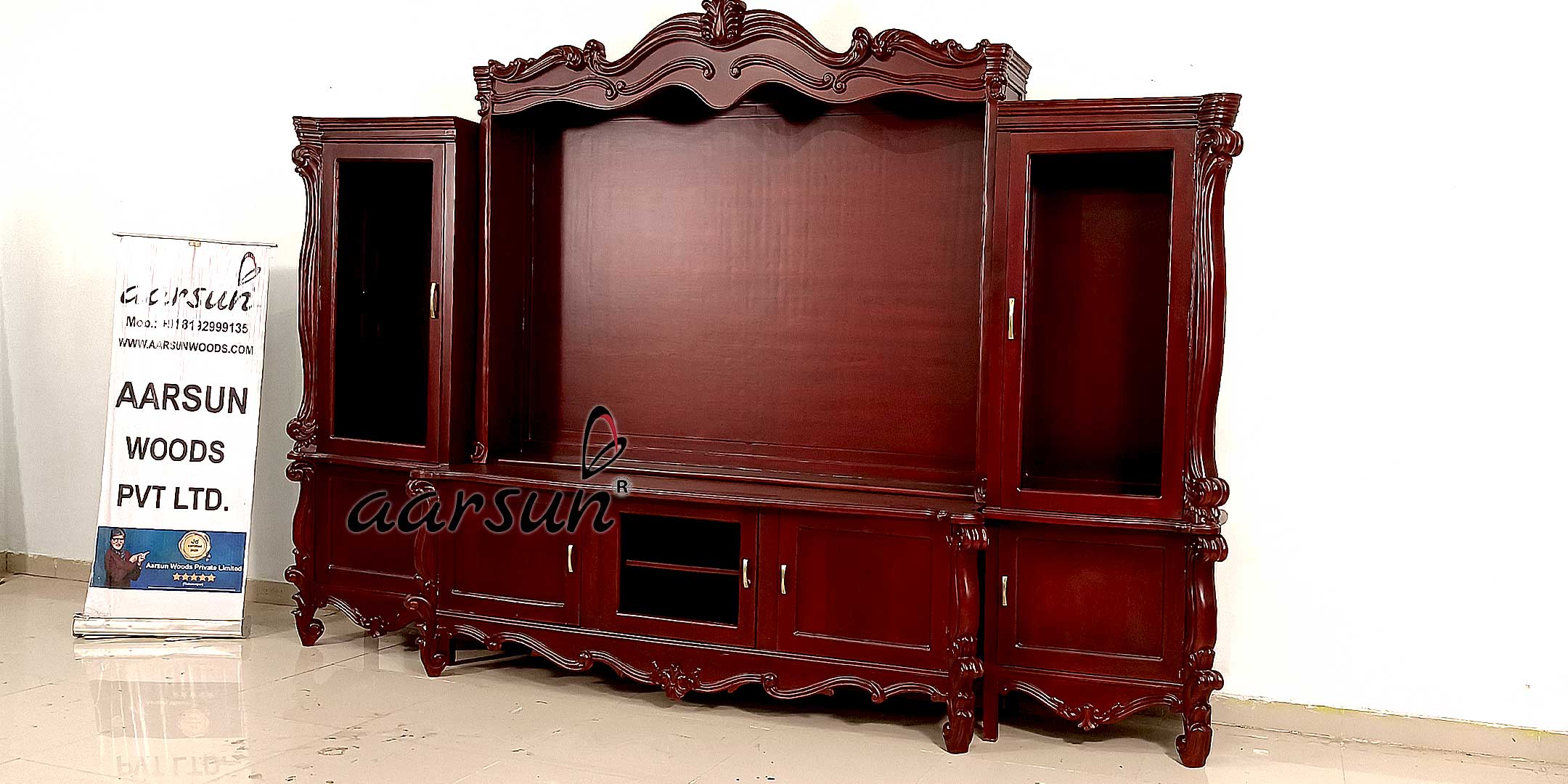 Aarsun brings you a classic storage cabinet carved out from solid teak wood and in a matte finish. The display cabinet has ample storage space with a beautiful ornate top and curvy design.
