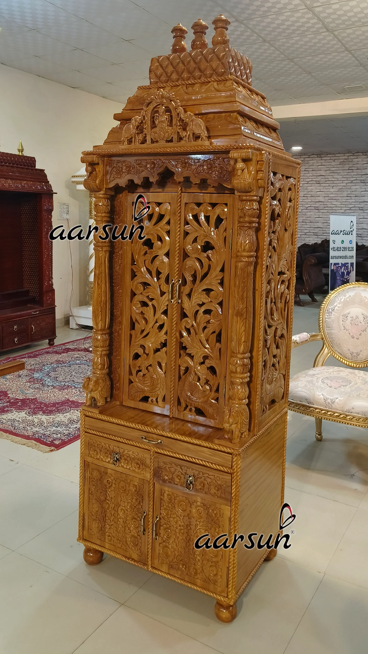 At Aarsun Woods, we ensure that every temple is uniquely designed. We are a famous brand known for manufacturing temples using premium-quality wood, which makes our furniture products durable and long-lasting. We deliver PAN India as well as outside India. The temple is easy to assemble and install. We provide door delivery of the temples with safe packaging.