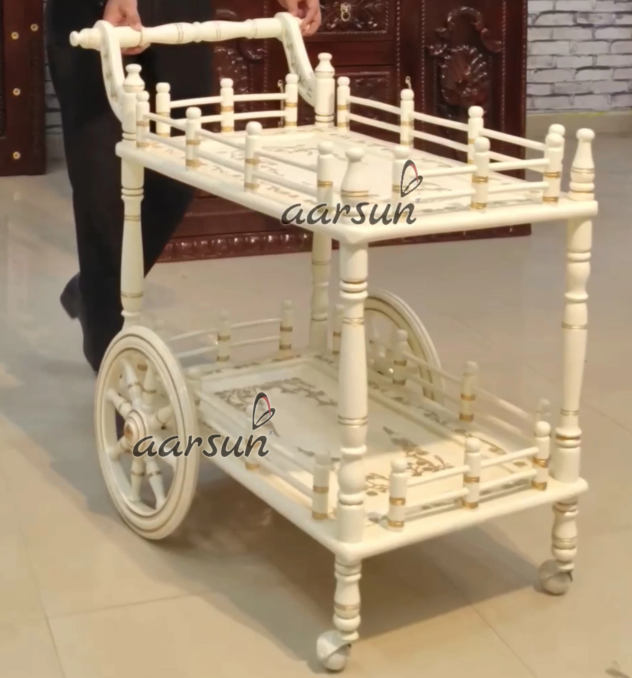 Aarsun offers it’s latest kitchen trolley in white deco paint. This beautiful kitchen trolley is must to have if you are someone who loves to serve food in an organized manner. This kitchen trolley will surely make your work even more easy and organized.