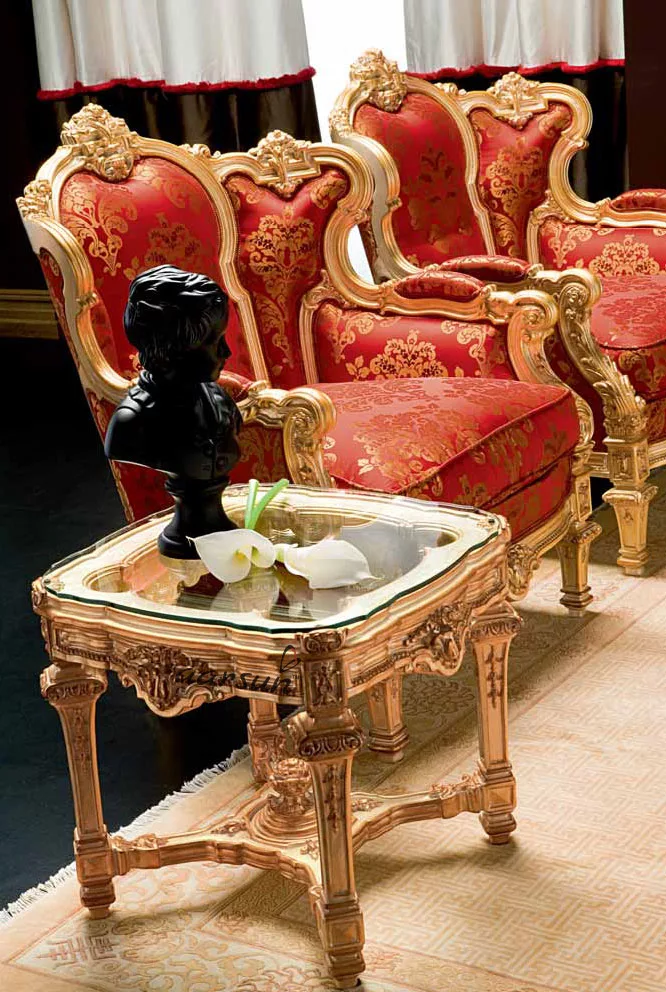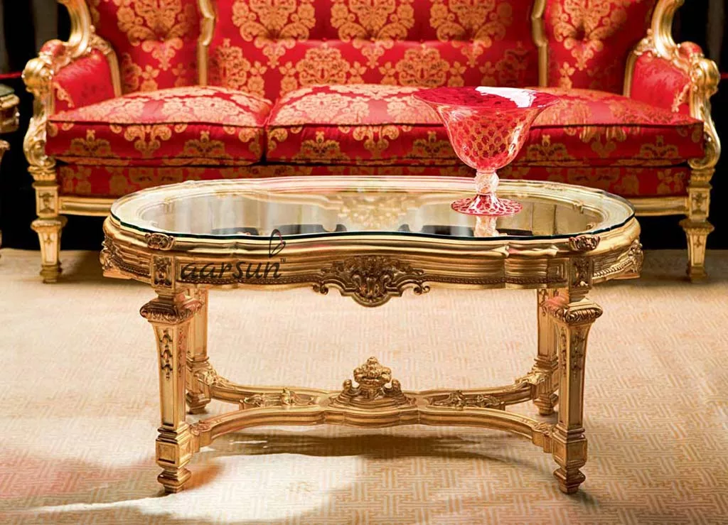 - Floral woodwork polished in Gold shade with comforting upholstery