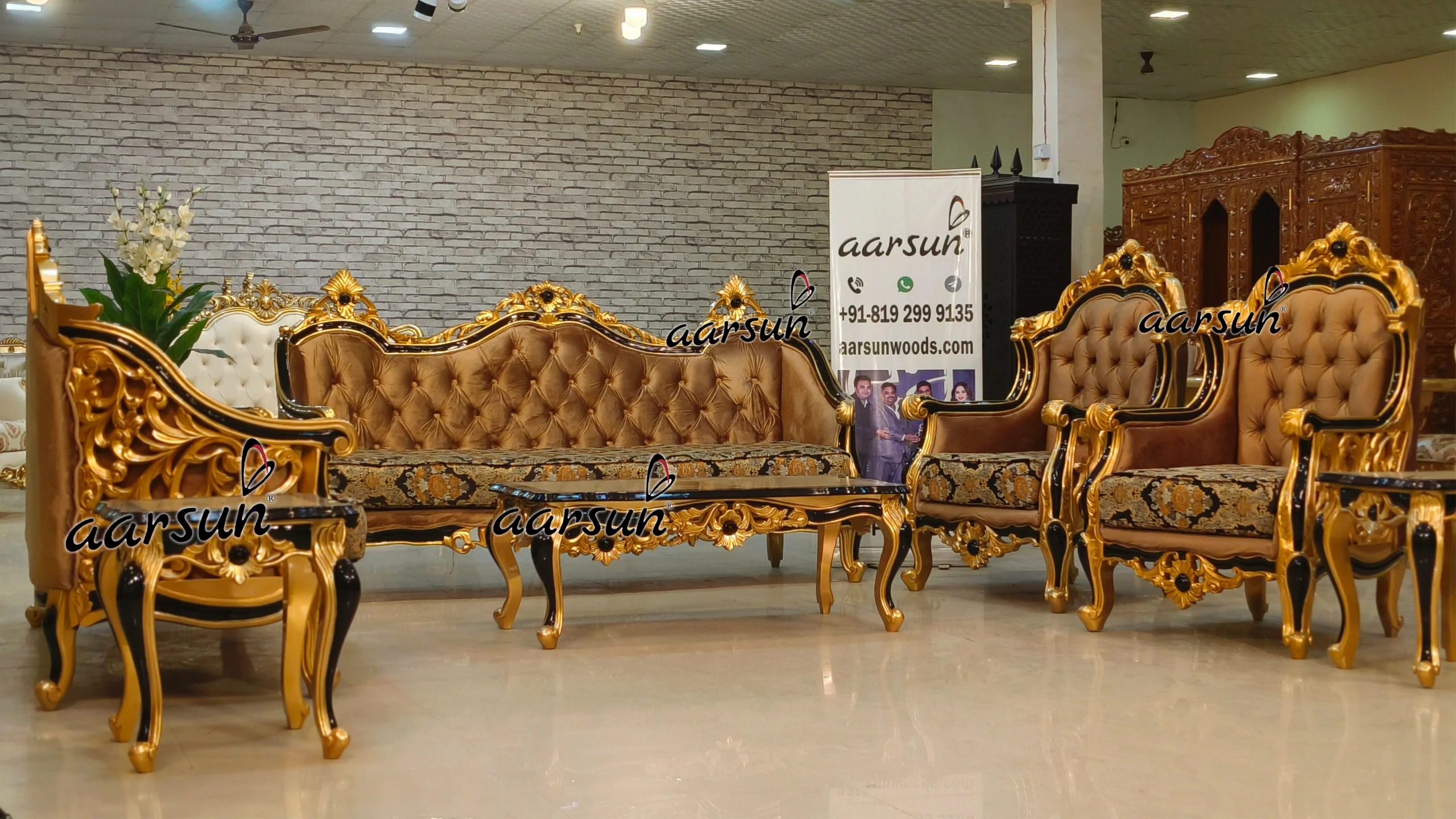 Our sofa sets are very well designed to provide the best comfort as the set is well cushioned. The beautiful hand carving can be seen on the whole set , which gives a royal look and set the perfect ambiance of your room.