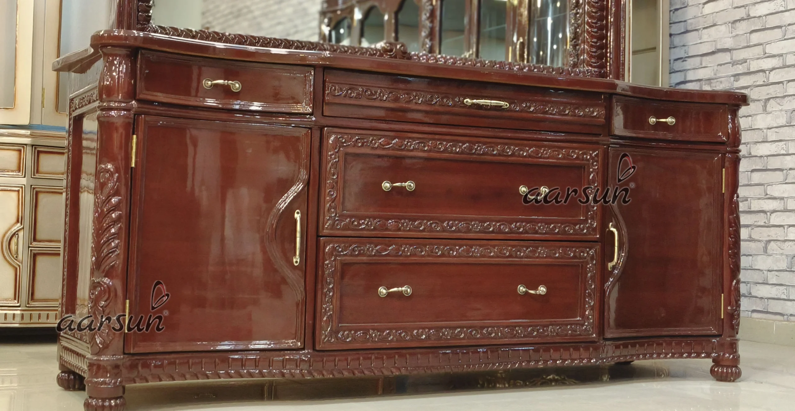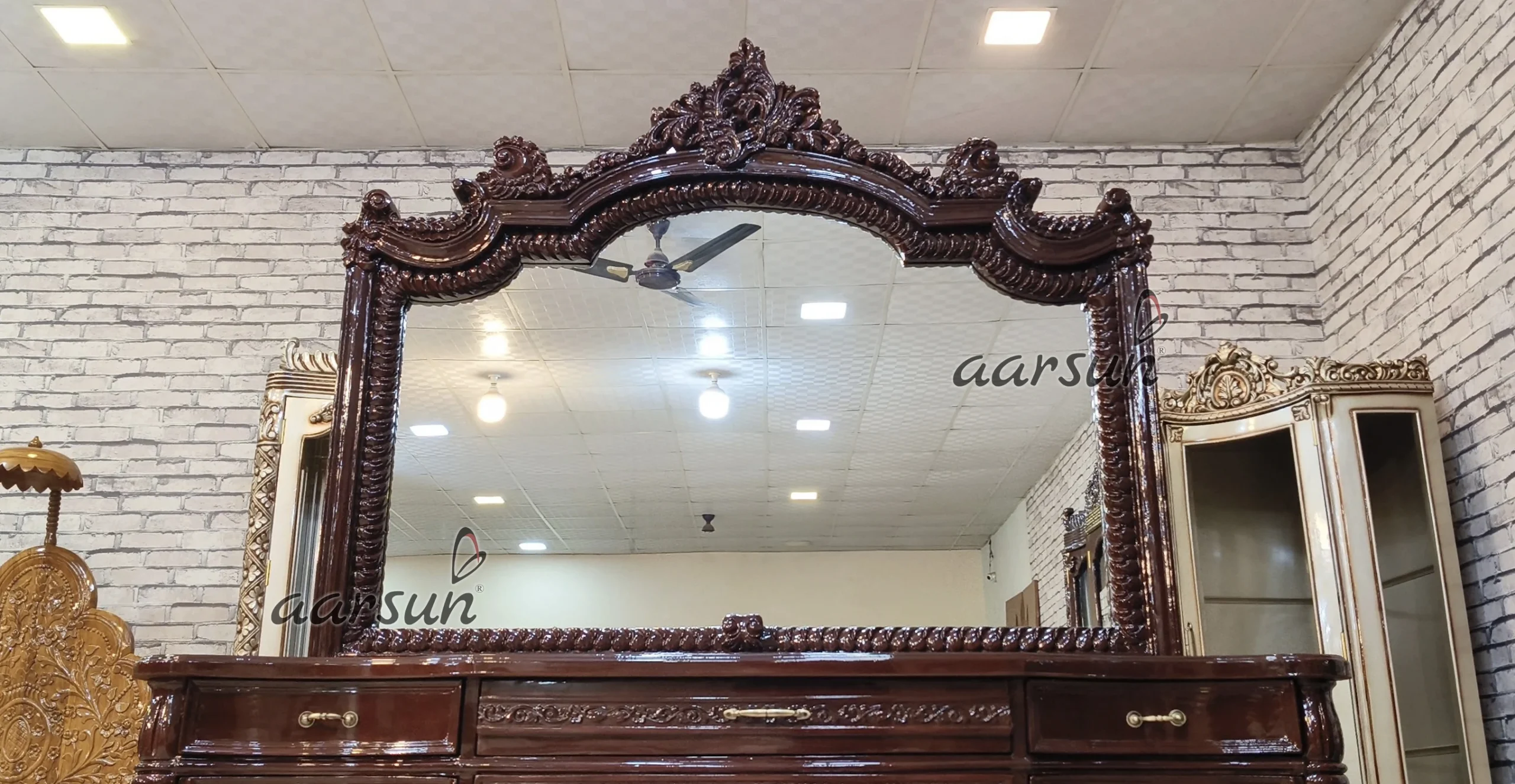 Aarsun presents the latest wooden dressing unit with mirror frame that is classic and versatile, these can be carved, painted, or stained for different looks. The dressing unit is crafted beautifully and you can find it popular in rustic, vintage, and traditional settings. A dressing table with a mirror frame is a unique charm to add to your room in your living space to raise the aesthetic appeal of your room. This unit was delivered to Kerala and was made as per the client choice. This dressing unit is functional as well as stylish and designed for grooming, storage, and organizations. This dressing unit typically includes a heavy-duty mirror frame, drawers, and storage cabinets. This dressing unit is ideal to place in bedrooms, walk-in closets or dressing rooms, and therefore provides a dedicated space for personal care and styling.