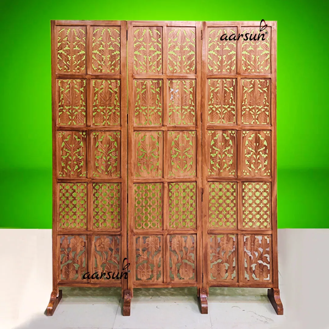 Room Dividers are an amazing piece of utility furniture that can be placed almost in any corner of your place. The 3 Panel with stand Mix design Room Divider is different from our usual room dividers as it has a Teak Finish rather than the dark antique finish in our regular ones.