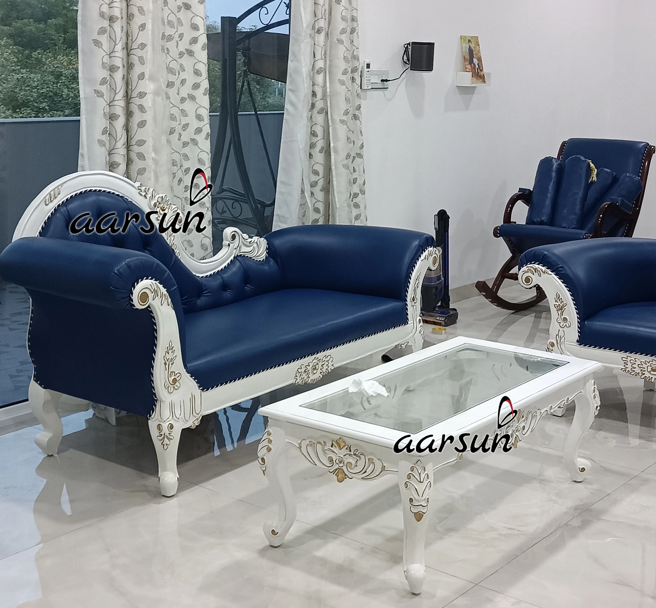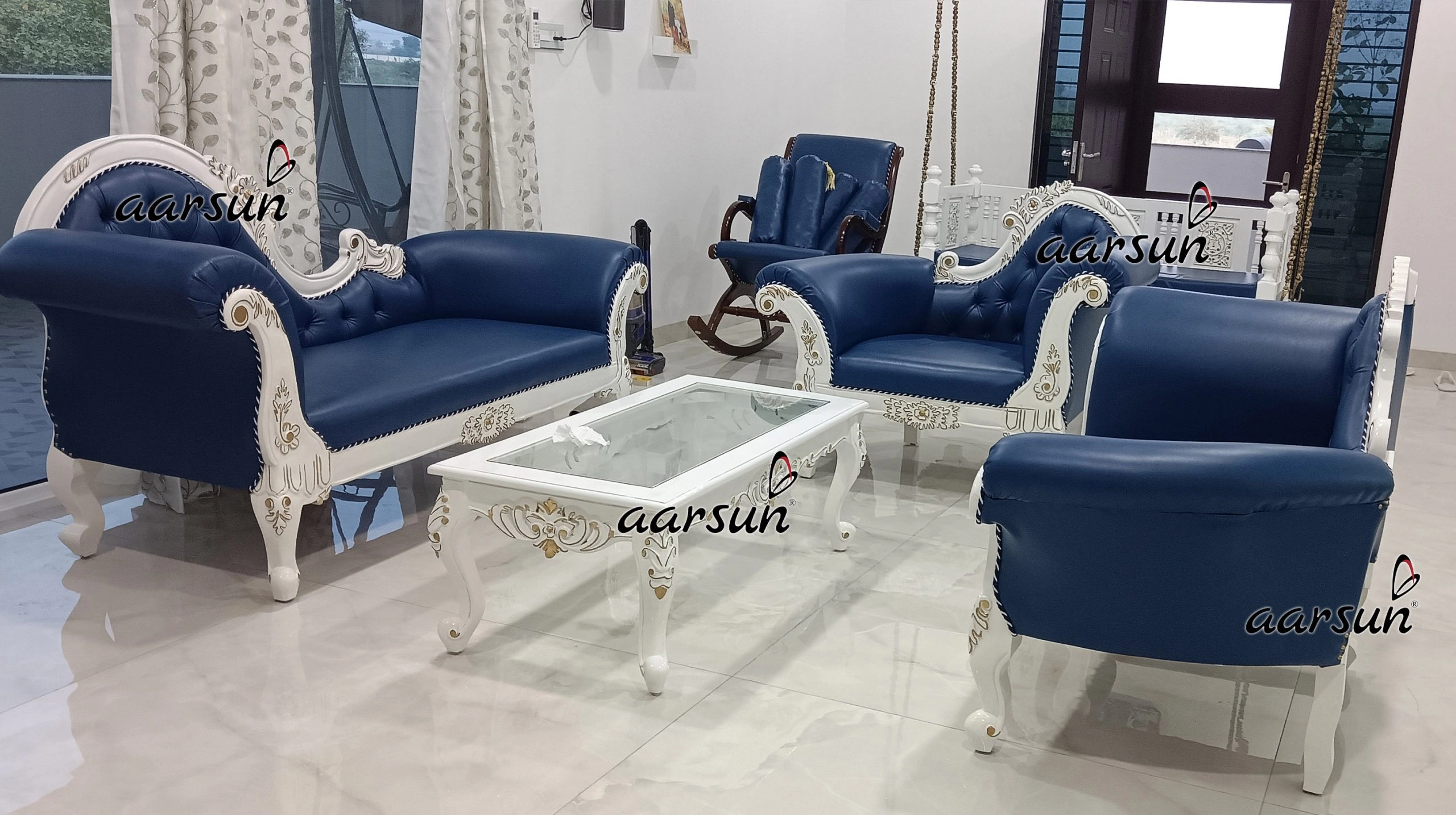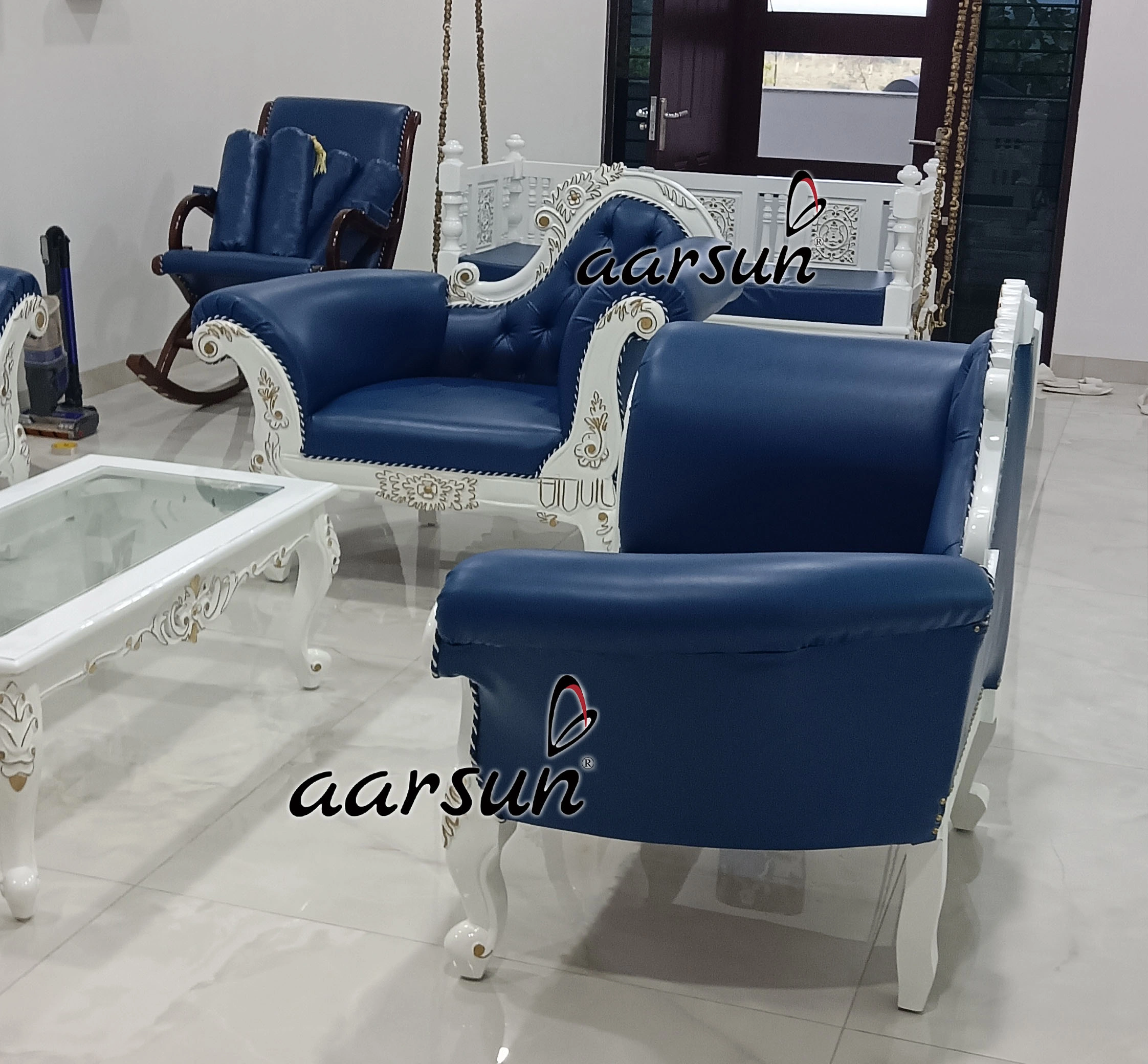 Home / Sofa Set Design Modern Latest & Trending designs / Modern Designer Wooden Sofa Set in Blue Upholstery & White Carving Modern Designer Wooden Sofa Set in Blue Upholstery & White Carving Call for Best Price WhatsApp Global DeliveryFree Shipping In IndiaAvail GST Credit on Business PurchaseLets have a look at Our Happy CustomersRated 4.8 out of 5 based on 451 customer ratings451 Google reviews SKU: SFST-420 Category: Sofa Set Design Modern Latest & Trending designs Tag: wooden sofa set designs Brand: Aarsun Related products Designer Wooden Sofa Set 3+2+2 Seater YT-117 Read more Fully Carved Classic Sofa Design YT-225 ₹123,900 Add to cart Ultra Luxurious Sofa Set in Antique Gold Double Carving Furniture YT-499 Read more Royal Wooden Furniture Living and Dining Area SF-0059 Read more