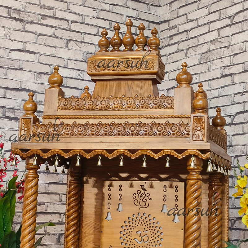 At Aarsun Woods, the temples we manufacture are as per the pooja tradition you follow because India is a diverse country with different religious values and pooja traditions. We craft home temples in premium quality Teak and Sheesham wood by understanding your pooja needs and requirement . You can check out our website for more home temple designs crafted by us.