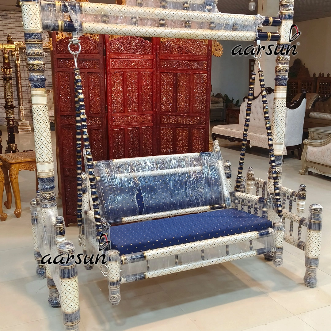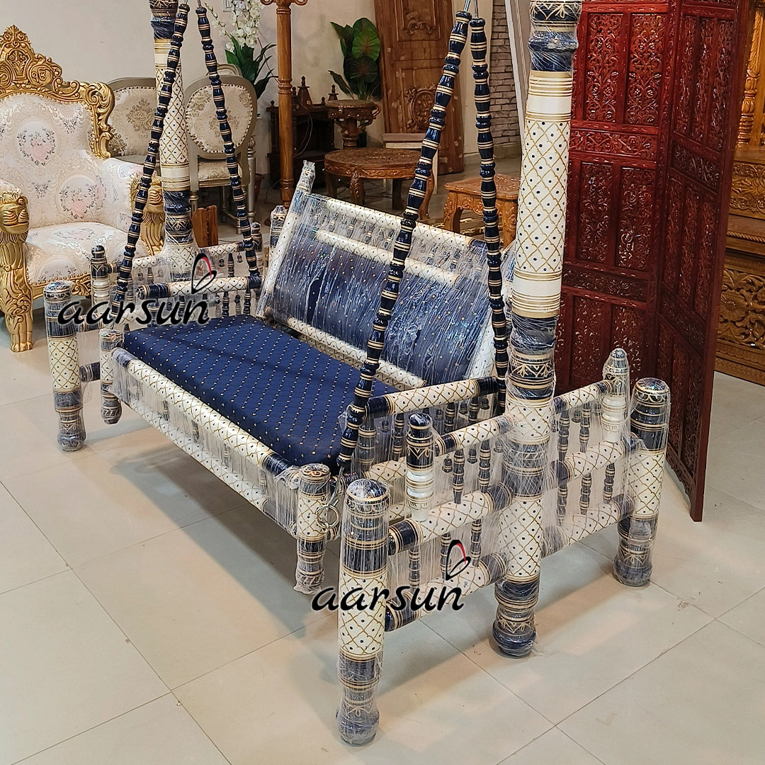 Premium Wooden Blue and White Sankheda Jhula
