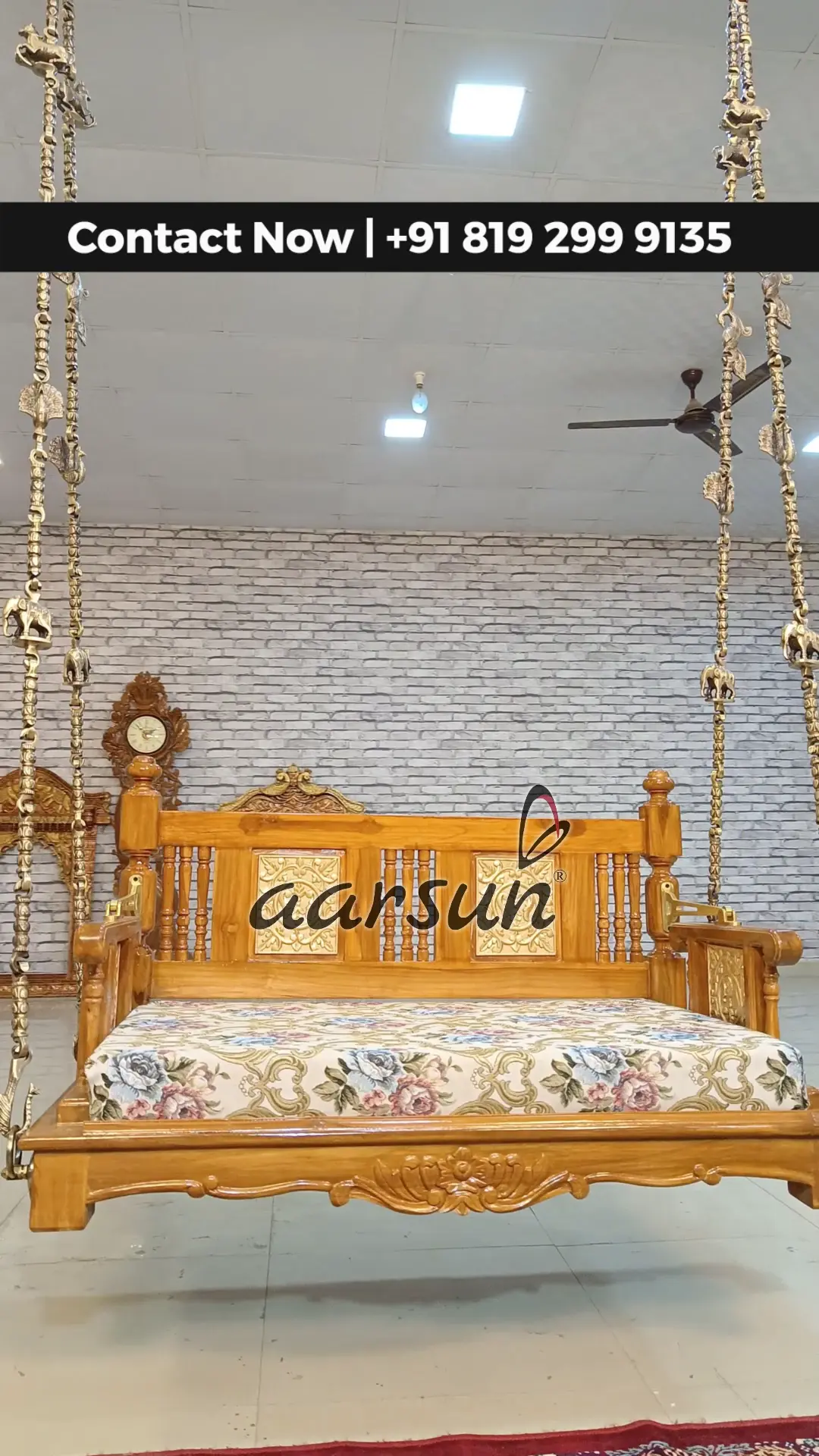 This swing set is reversible , this means that you can use this swing in either of the directions according to your convenience. The brass chain has beautiful elephant and peacock figures which makes it even more beautiful. Not just that but the whole unit can be personalized according to your requirements. Aarsun curates the most unique pieces and we are famous for our quality and uniqueness which we serve.