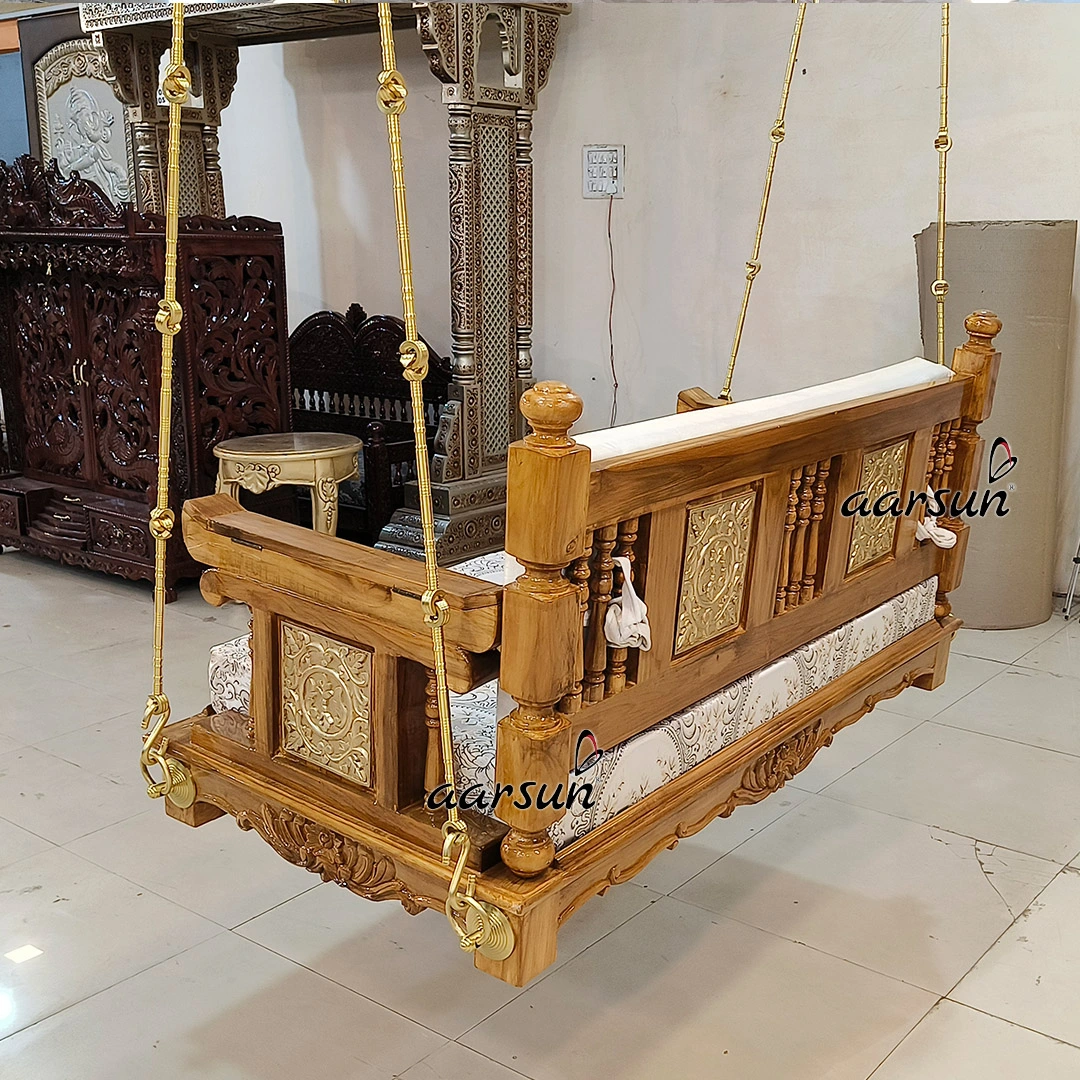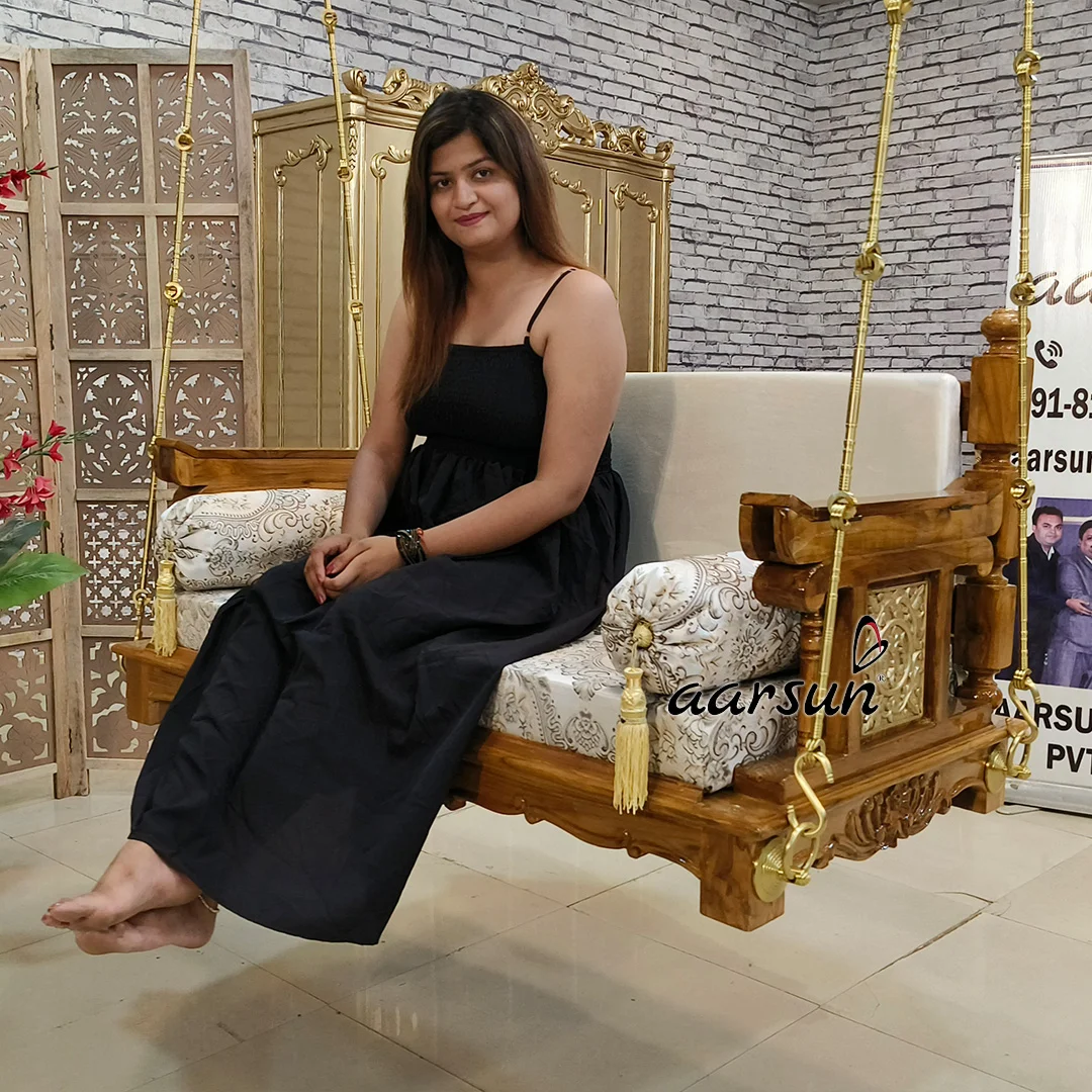 Reversible Wooden Ceiling Jhula with Brass Chain