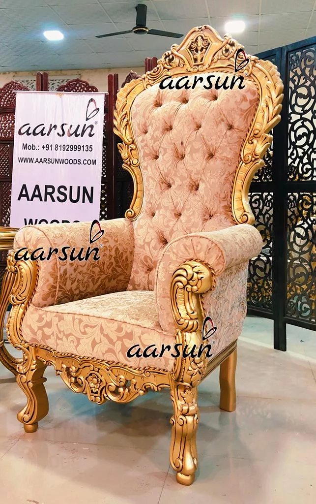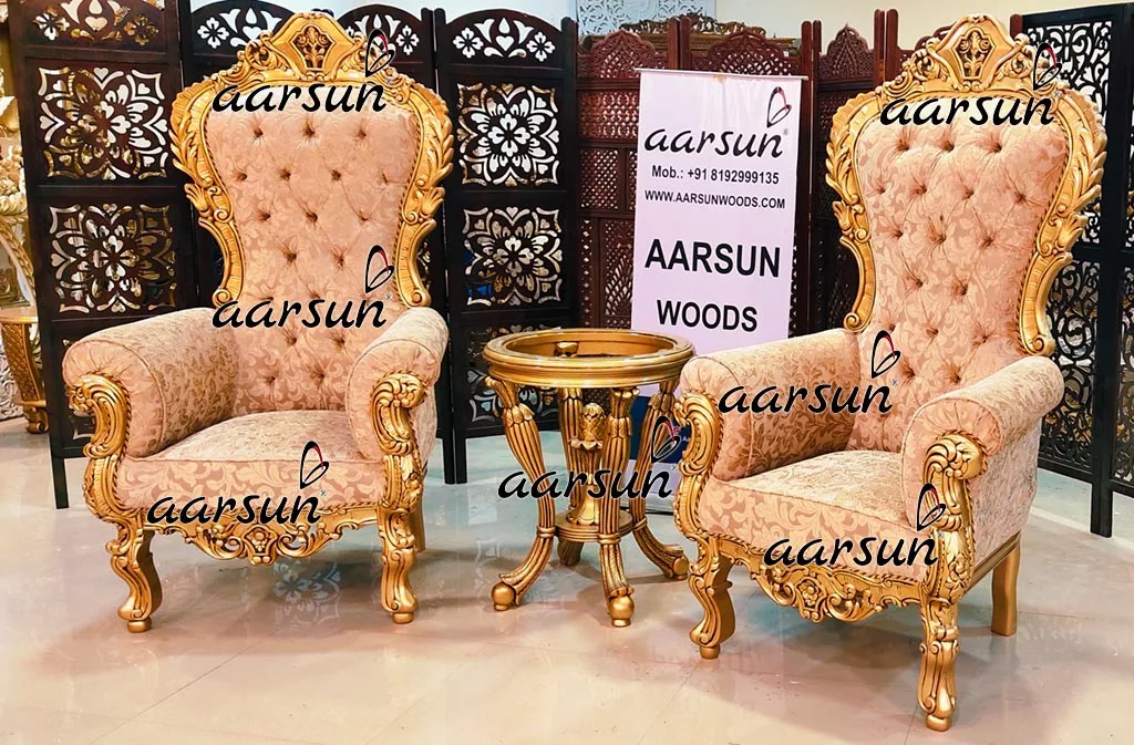 Royal High Back Chairs with Side Table Carved in Teak for You. This is a perfect example of the master artisans we have in India. Aarsun – India’s top brand in the premium and Royal furniture industry. Amazing Handicraft artwork with years of experience makes Aarsun stand distinguished in the Royal furniture industry.