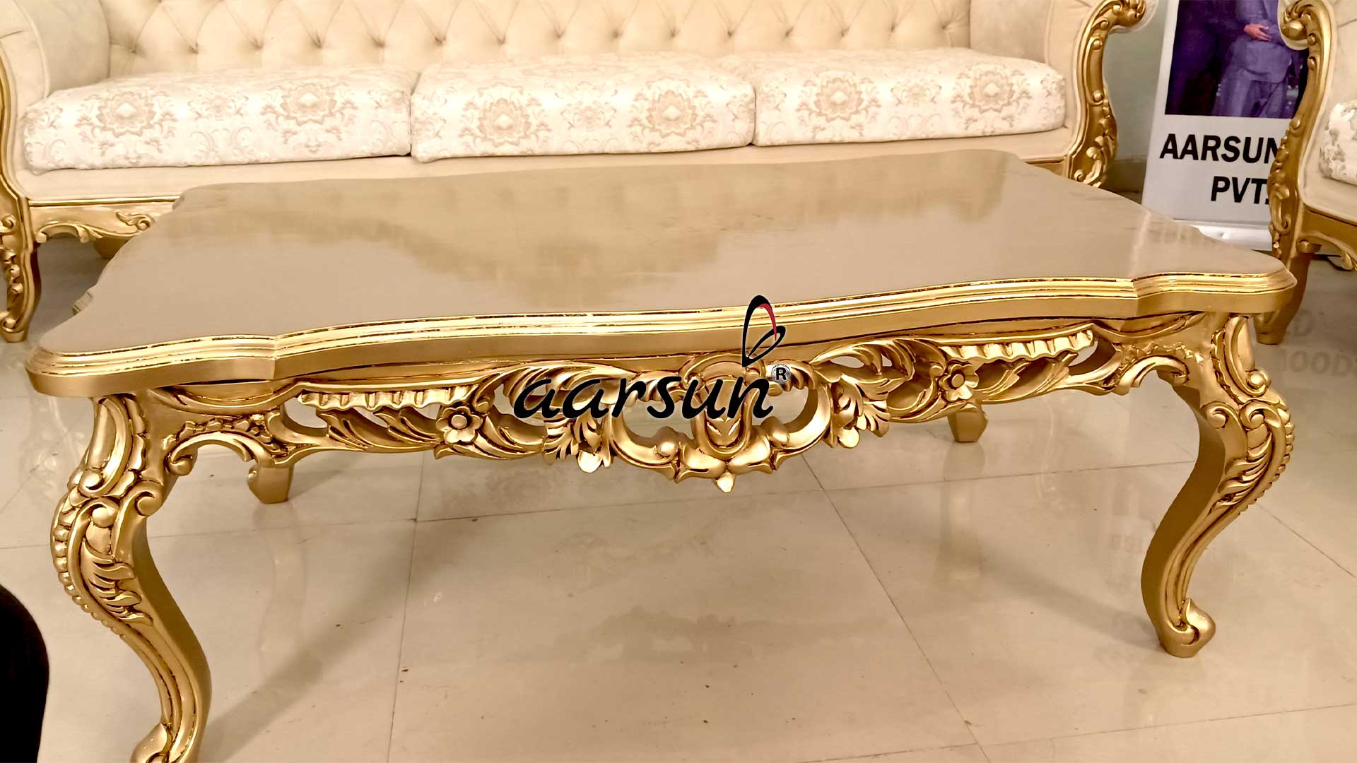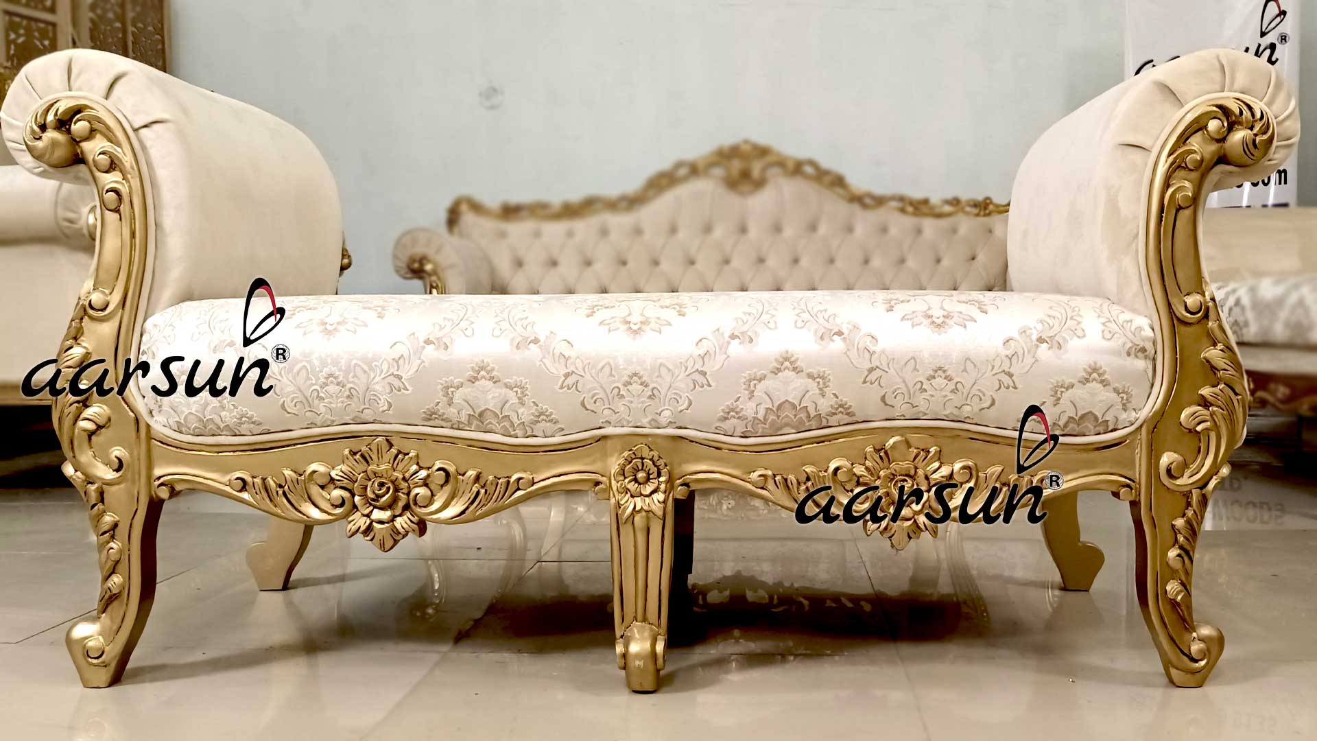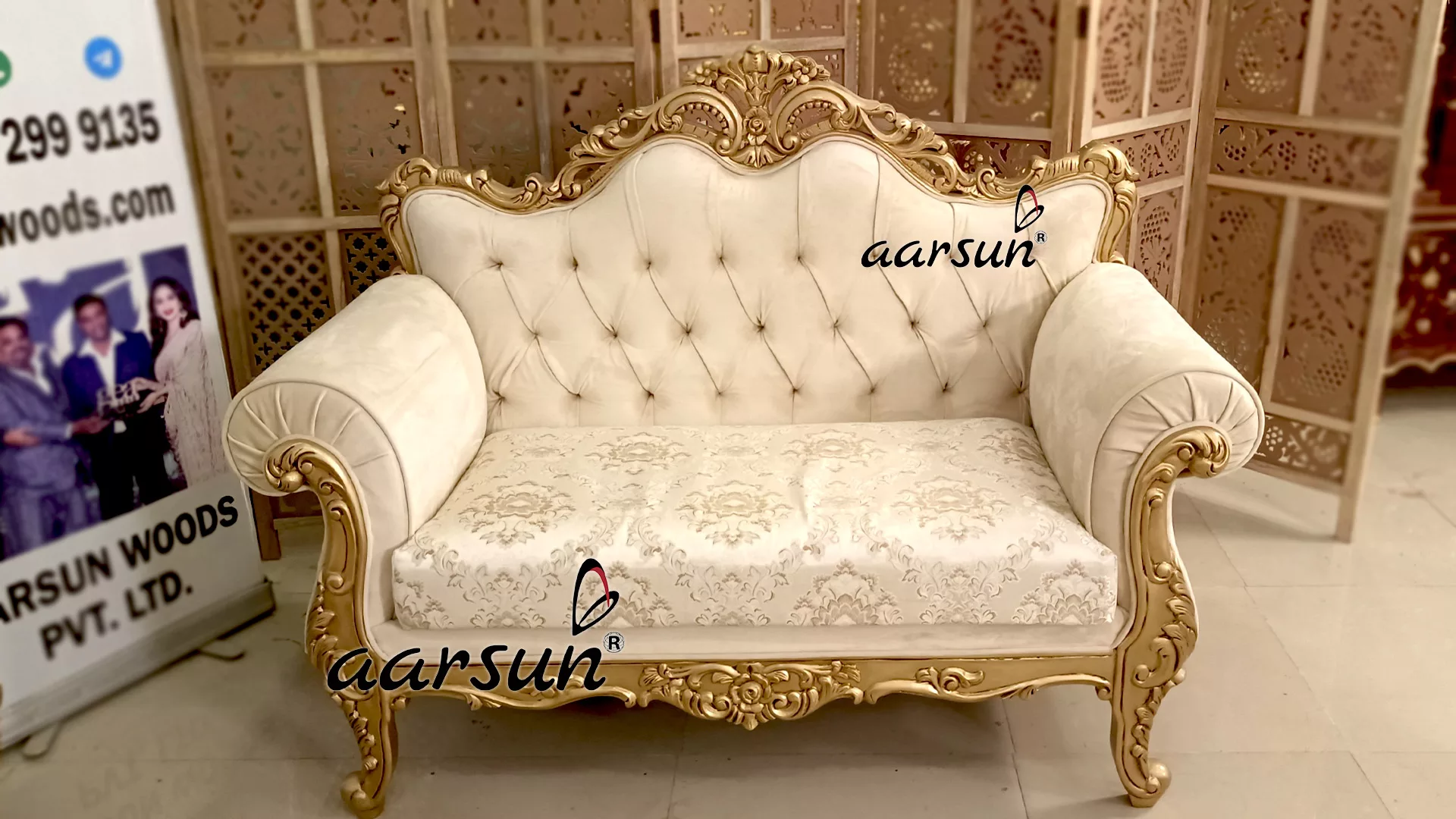Consisting of a spacious three-seater sofa with a couple of 2 seater sofa, a distinctive settee and a stunningly carved coffee table, this beautiful sofa set is ideal for your living room. Crafted by skilled craftsmen, every unit includes a sturdy and long-lasting wood with gold paint.