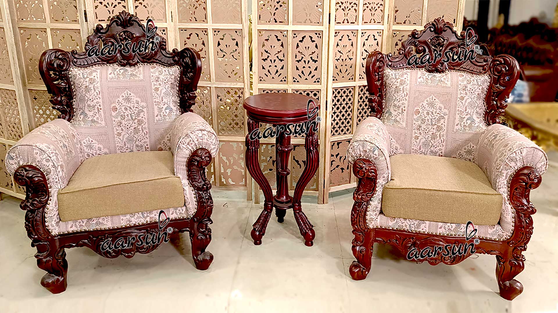 A Beautifully handcrafted Wooden Royal Room chairs. The design and the finish are unique as always. Aarsun has a history of providing unique Room chairs to all of our clients.