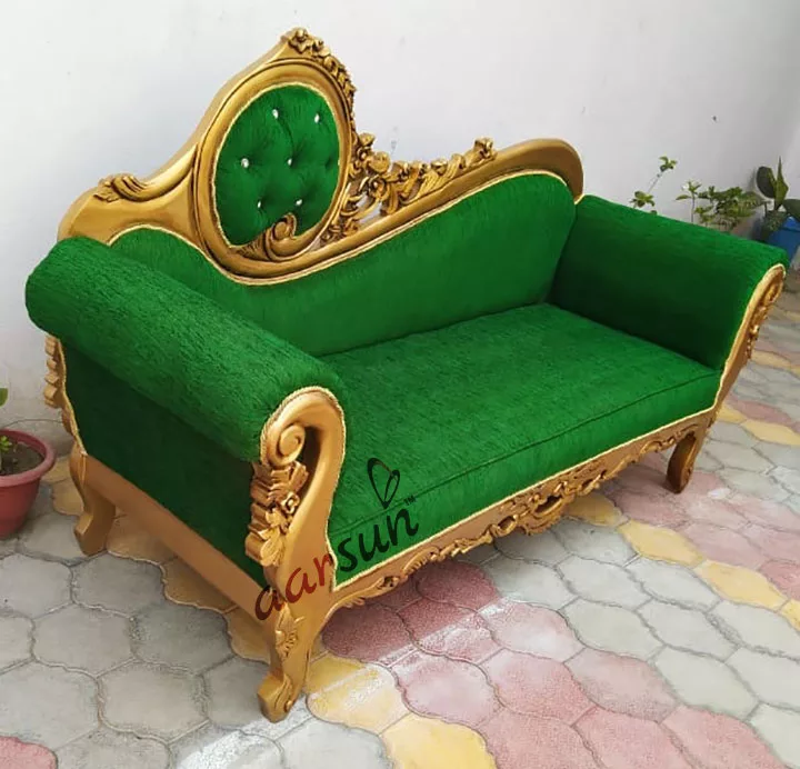 Aarsun brings to you premium design Royal Wooden Couch made by skilled artisans of Aarsun. The wooden couch is made of teak wood with green upholstery. A huge range of traditional handmade furniture and handicrafts famous from top international brand Aarsun with trademark in 35 countries . Best trending designs in custom made unit, designs, size, fabric of client’s choice.