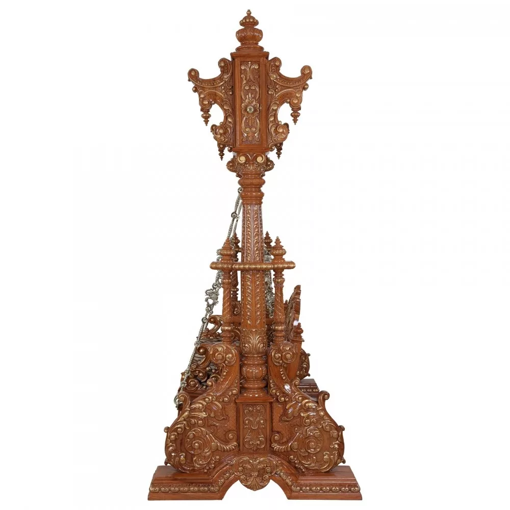 A Royal Wooden Swing is a beautiful depiction of Indian handcrafting skills. It has been provided with a wooden pillar and the shaft that joins the two pillars together. The pillars standing on a pedestal and gorgeously and intricately carved all over with artistic representations of flowers. The pillars craved with arched designs on the top and connected with an equally embellished shaft with a centrally designed flowery motif.