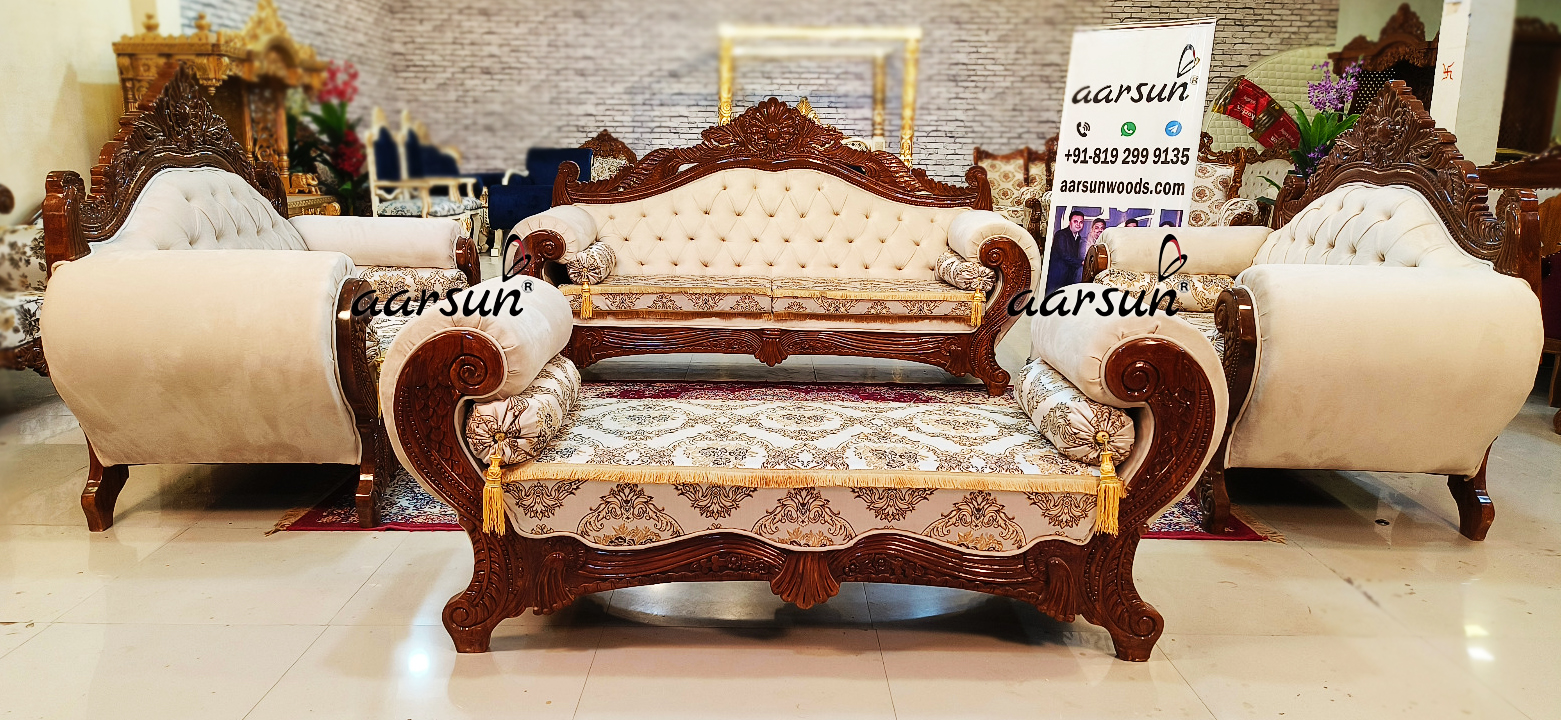 We have posted over 1000 videos on our YouTube channel featuring sofa sets in different fabrics, types, themes, and color combinations. You can customize your sofa set with additional features like a swing, diwan, settee, long back chairs, and more. Aarsun is known for “Choice Wala Furniture,” where the design, color, size, and fabric are customized to your preferences, delivered to your doorstep across India and internationally. Let your creativity flow, and we will design the perfect set for you.