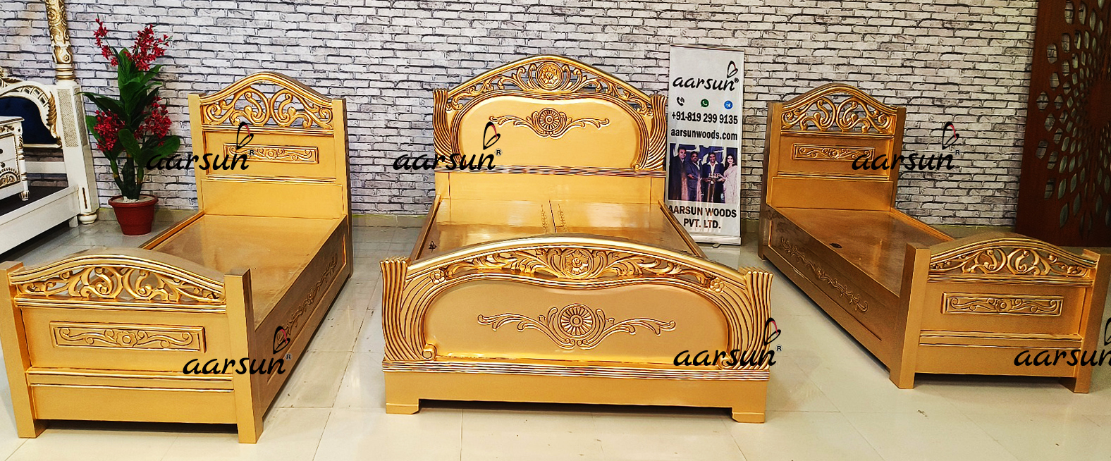 Aarsun Wooden Bedroom set in Gold paint Aarsun Bedroom set in Gold paint Aarsun Woods Bedroom furniture in Gold Polish