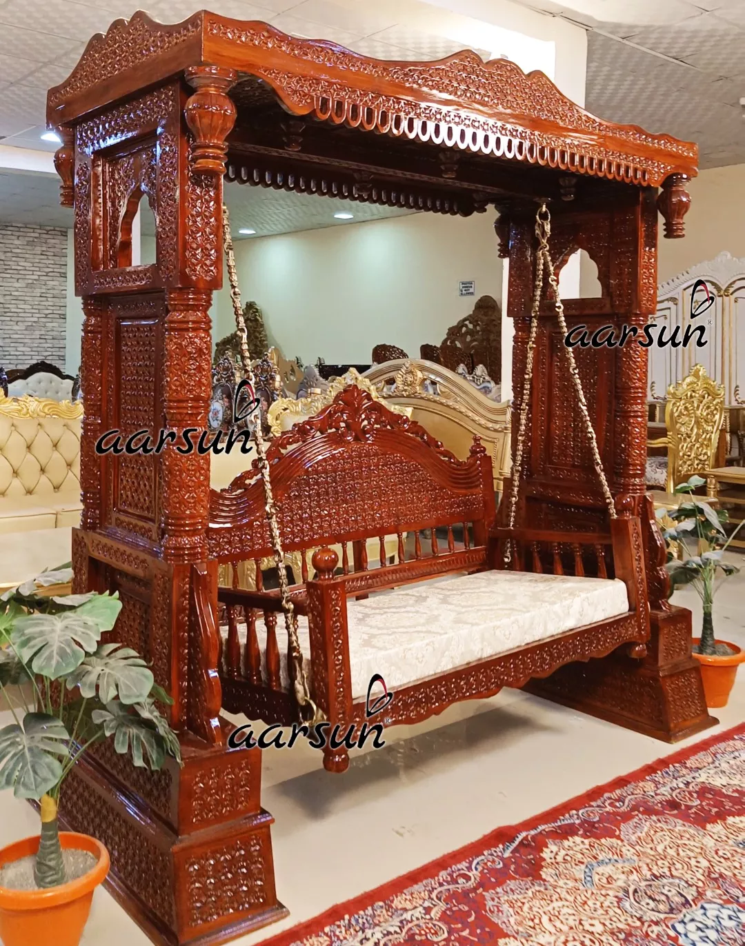 This is the top design of home jhula with double pillar and ceiling design in solid teak wood and exclusive craftsmanship.