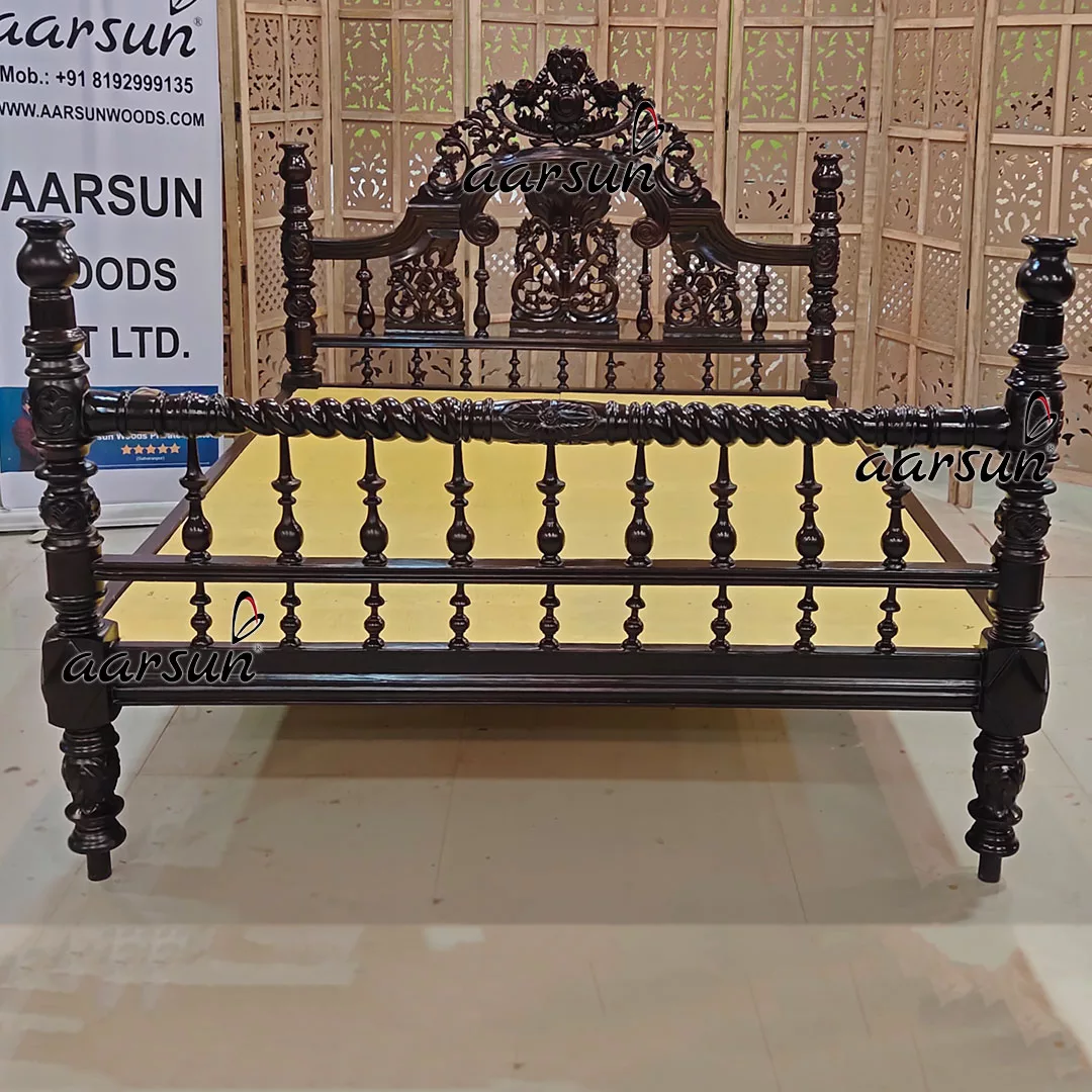 Aarsun brings you a wooden Semi Poster Bed of ethnic charm with a hand-carved floral pattern.
