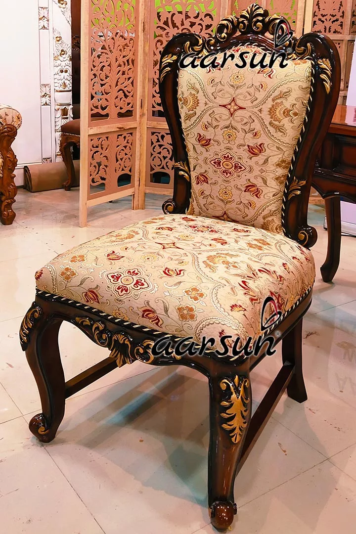 Both the table and the chair has cabriole legs carved out by hand by our experienced artisans from Saharanpur. No CNC machines have been used for making these spectacular designs.