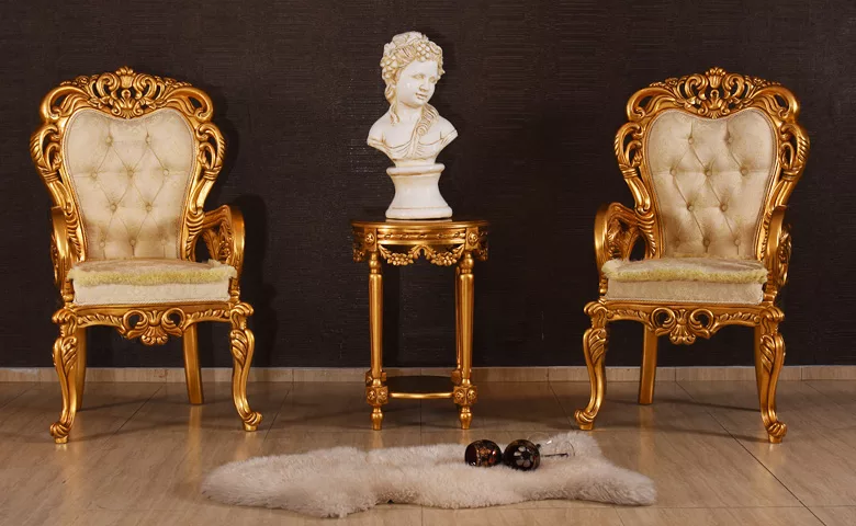 • Made from Premium Quality Teak Wood – Gold Polish With White upholstery.